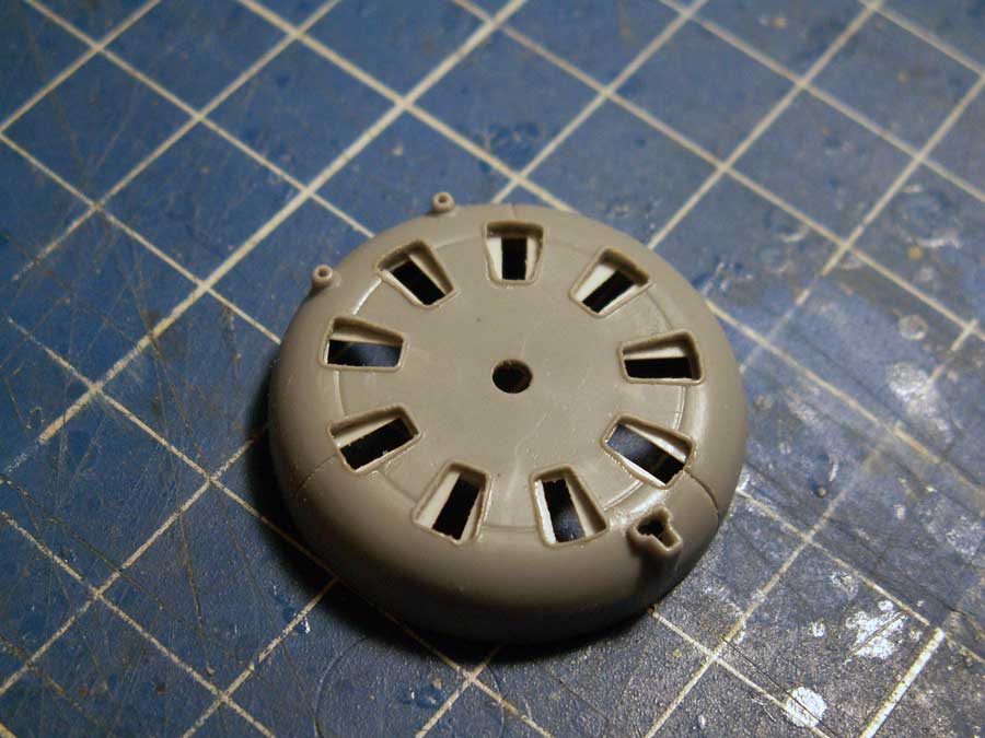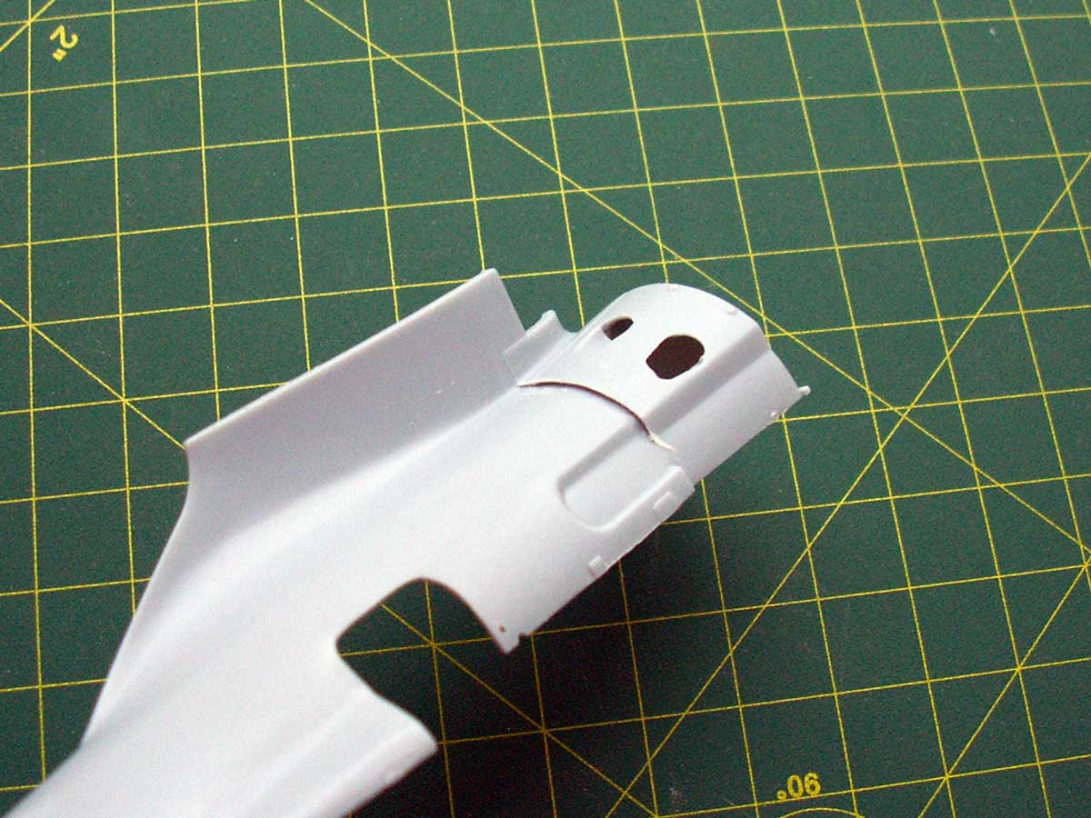 Немного доработал морду. Взял второй вариант из набора, без верхнего воздухозаборника. Просверлил то что надо было, немного сточил толщину и добавил жалюзи. Надеюсь что правильно понял логику их работы