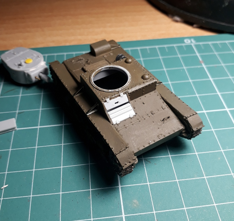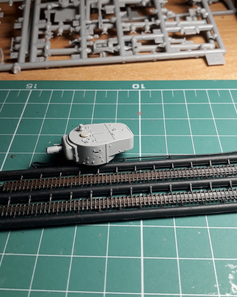 Перешел к башне. Постараюсь вечером сфотографировать что по ней сделал. Сравнив то что в коробке с фото, долго не знал с какой стороны начать...Если вкратце то вот что увидел на башне (огнемет и его маска пока не в счет)