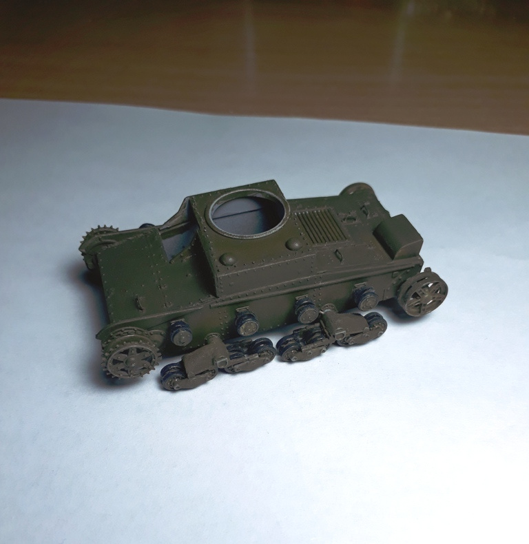 - поставил наборные гусеницы от UM. Тут нужно отметить, что к Миражовскому изделию они не очень подходили по шагу зубьев звездочки. Но постепенно собралось в ленту.