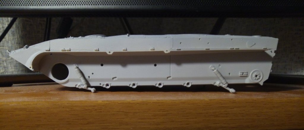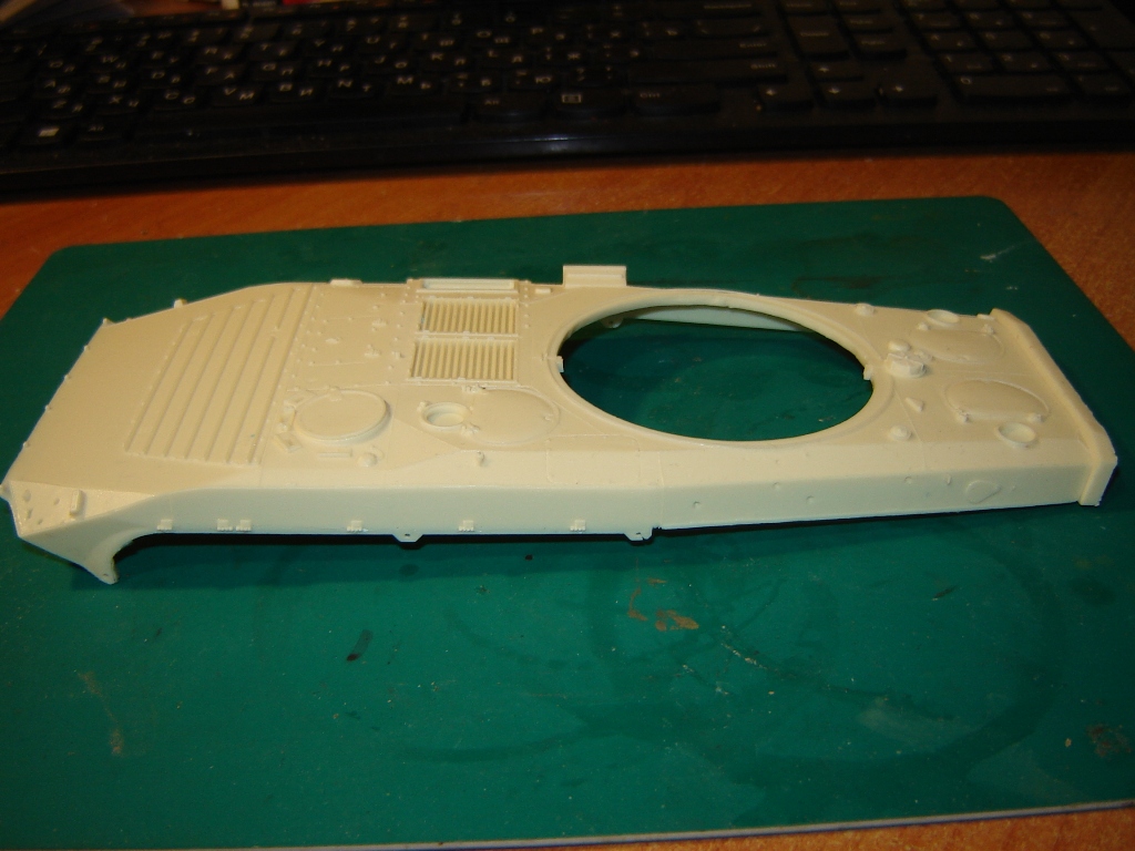 недолго думая принялся работать Франкенштейном, заодно чуть исправил трамповские катки опорные. Заднюю стенку решил оставить родную--меньше гемороя со срезанием и подгонкой. Если что--поменять недолго))