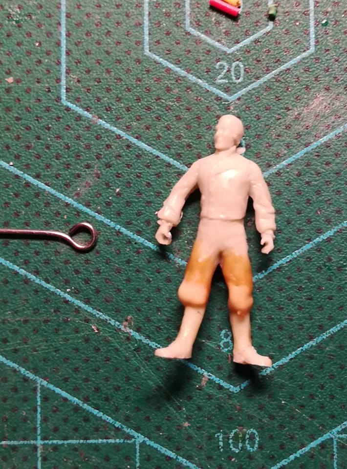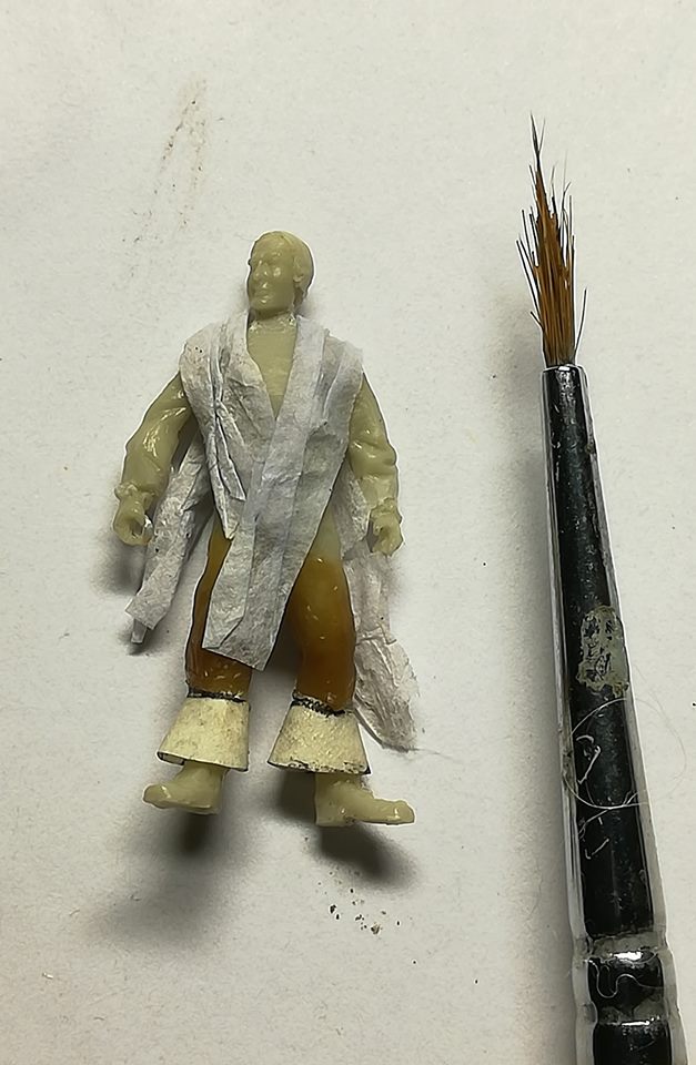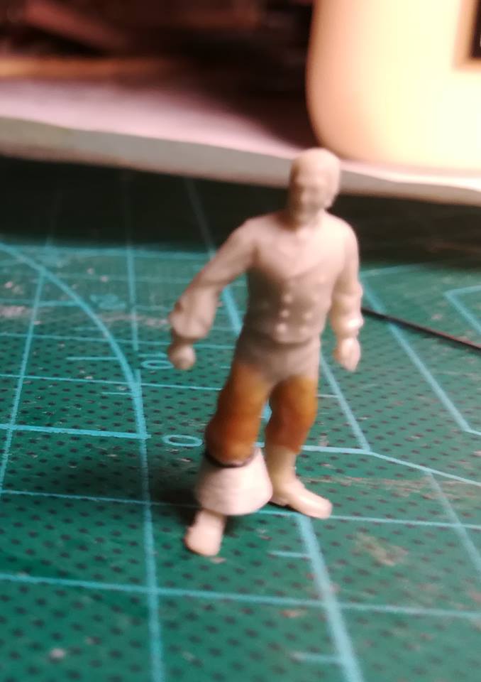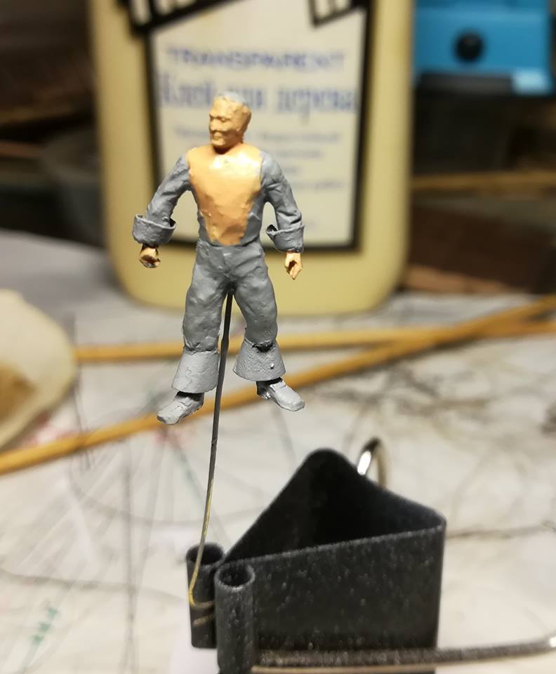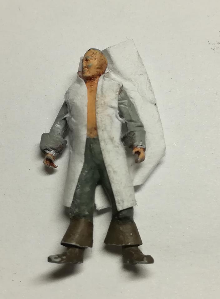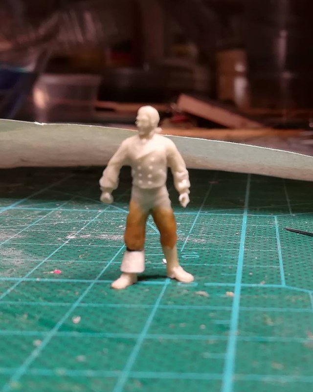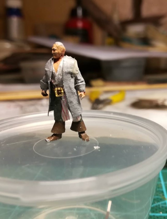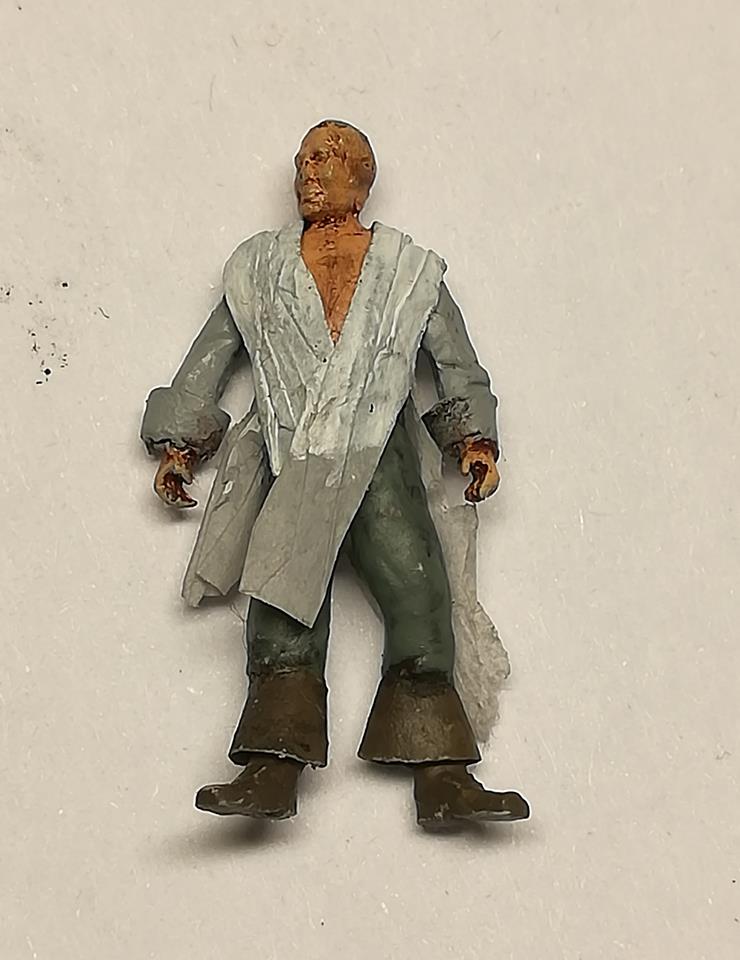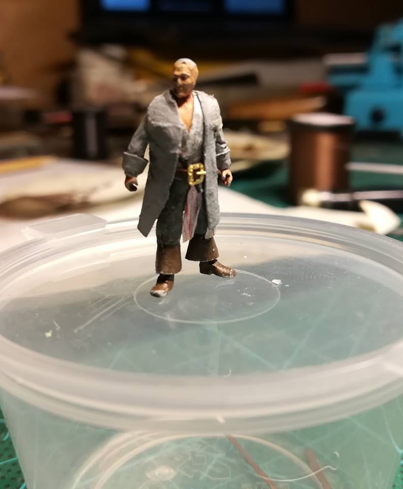 Затем примерил видимые части рубашки, подрезал оригинальные рукава, сделал отвороты ра рукавах его сюртука, загрунтовал и покрасил некоторые части.