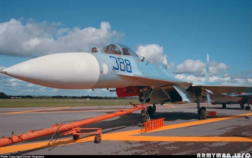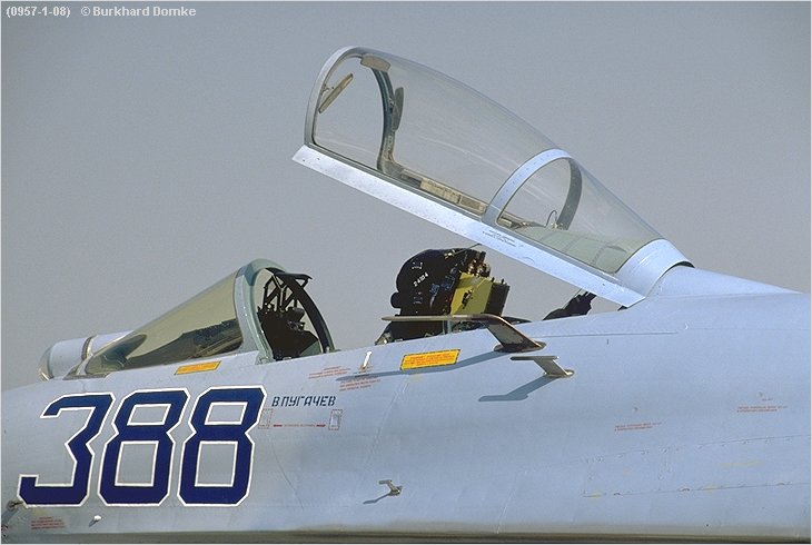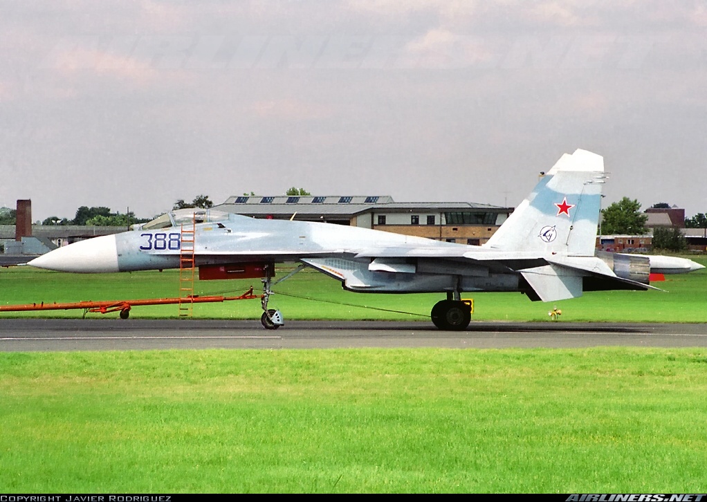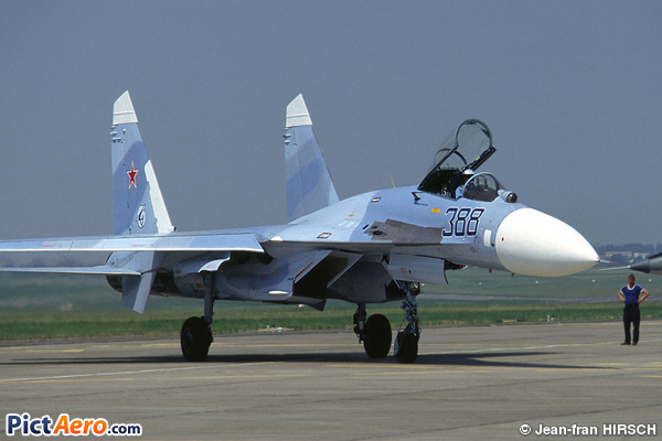 По прототипу: На машине, с выставочным номером 388 в 1989 году лётчик - испытатель Виктор Георгиевич Пугачёв продемонстрировал высший пилотаж в Ле-бурже, что стало заграничным дебютом этой машины, сегодня уже ставшей легендарной.