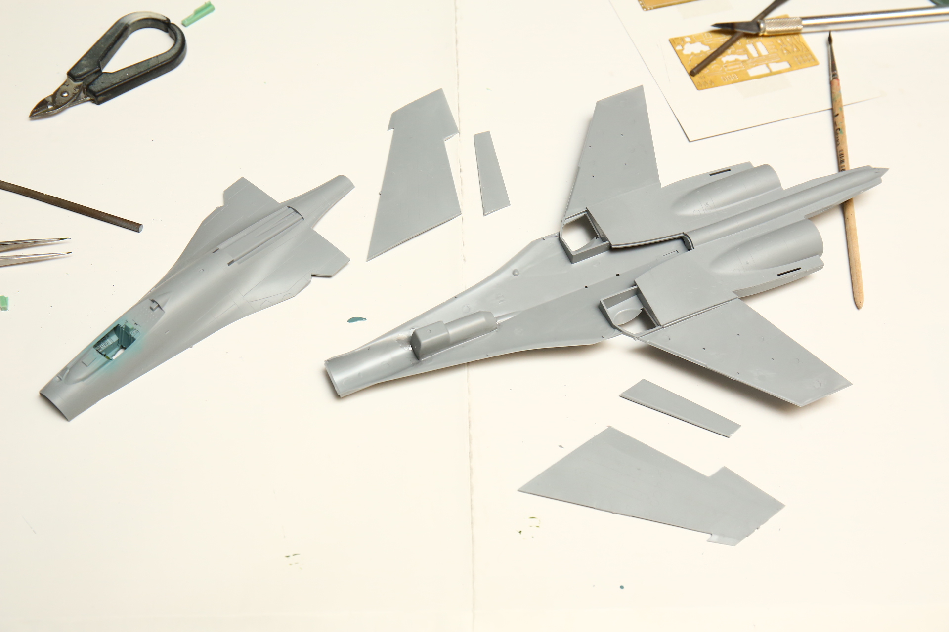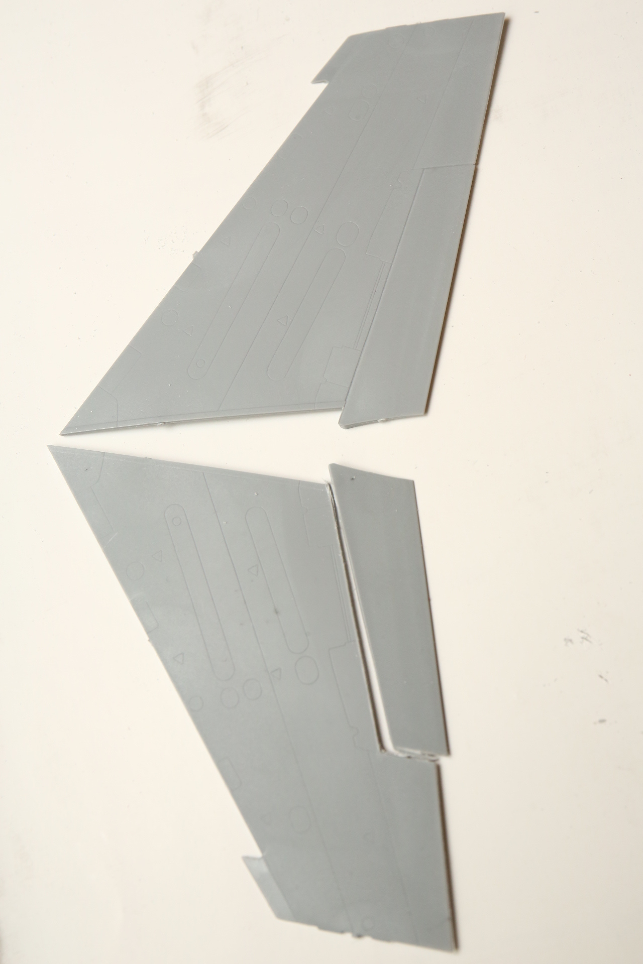 Звезда сделала флапероны таким образом, что они прям сами напрашиваются, чтобы их отпилить и поставить на крыло опущенными. Отпилил. Отлитые зацело с крылом не очень всё-таки смотрятся! А отрезать их оказалось очень просто!