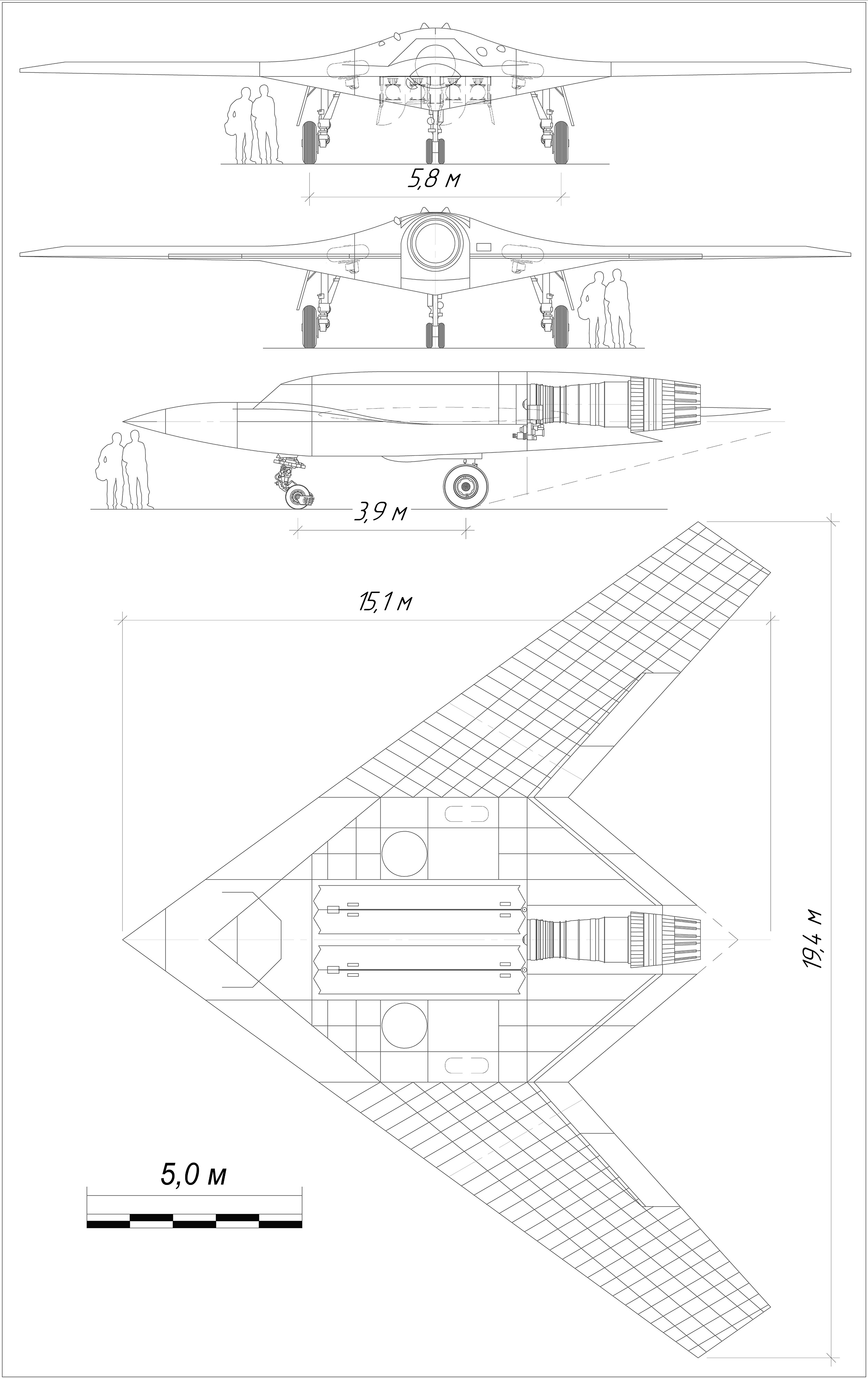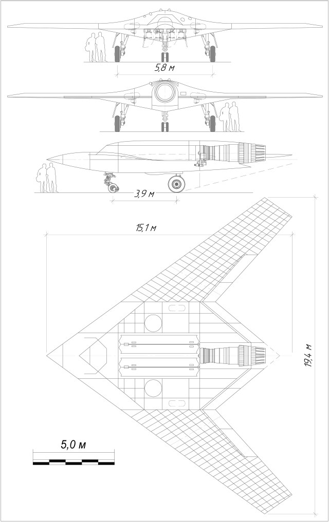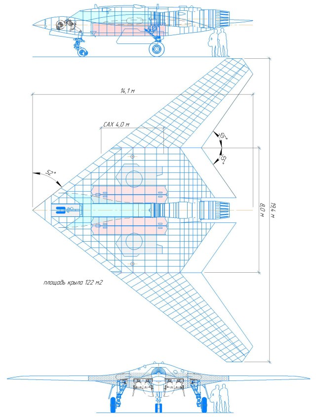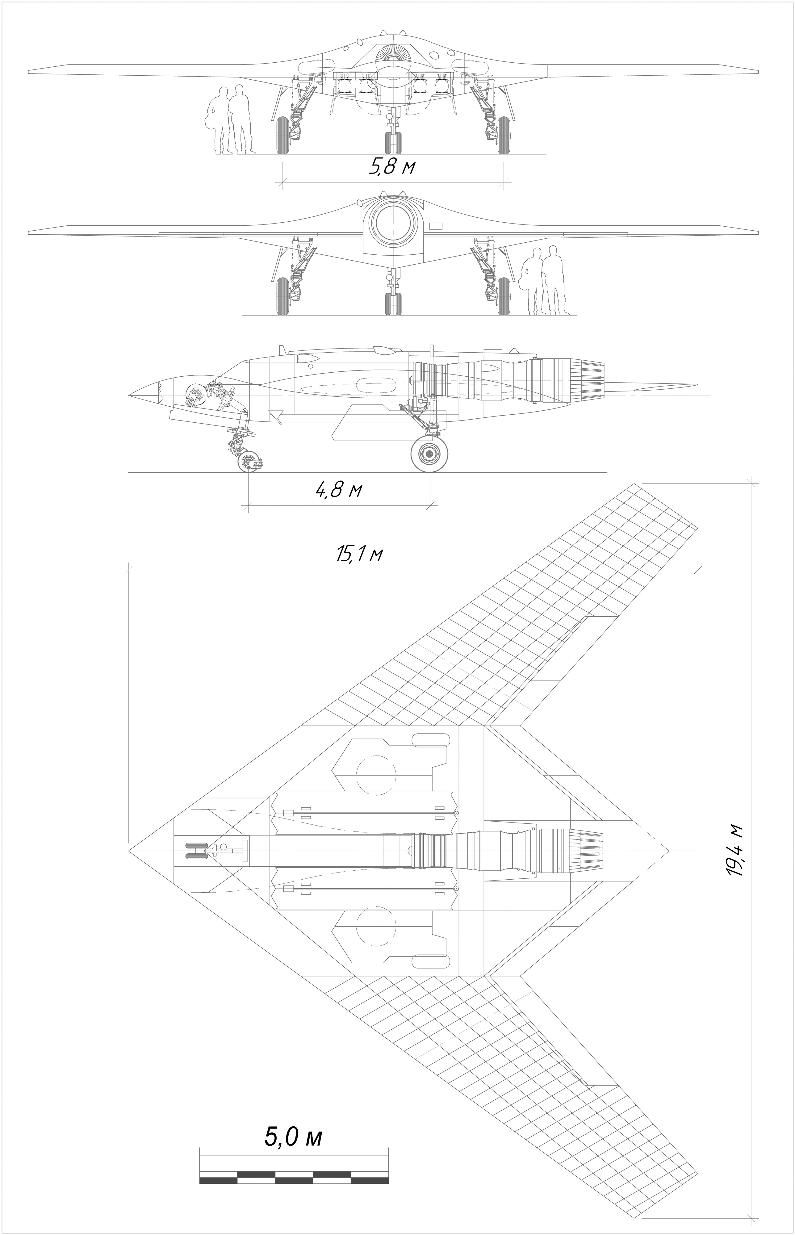 Размером-то поболее будет чем СУ-57, размах крыла впечатляющий. Почему-то думал, что не такой уж и большой в реальности.