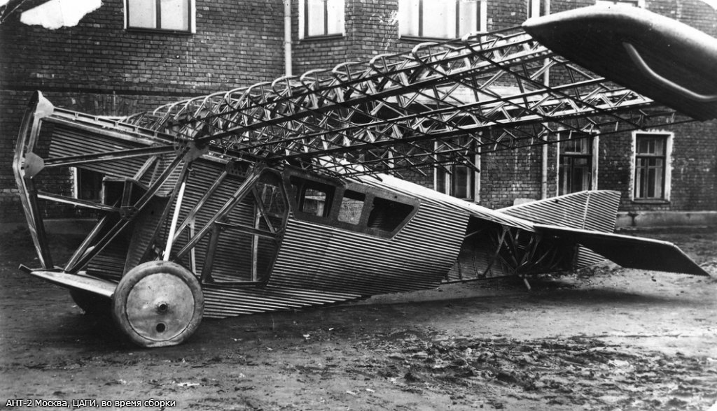 В качестве первой "гофрированой ласточки" естественно выбран первый советский цельнометаллический самолёт АНТ-2.