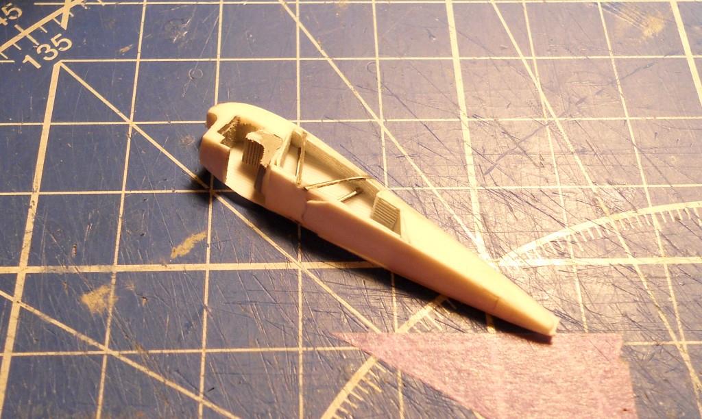 Поврежденная обшивка снята. Буду ещё увеличивать внутренний объём почти до реального. Заодно сделал основу крыла.