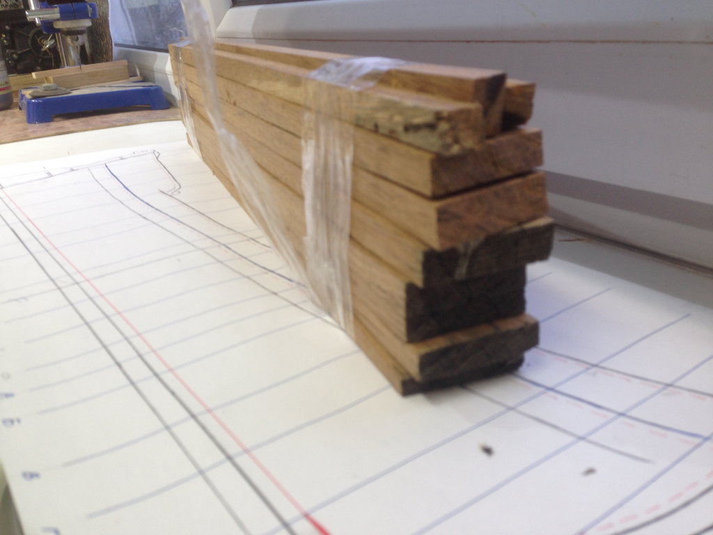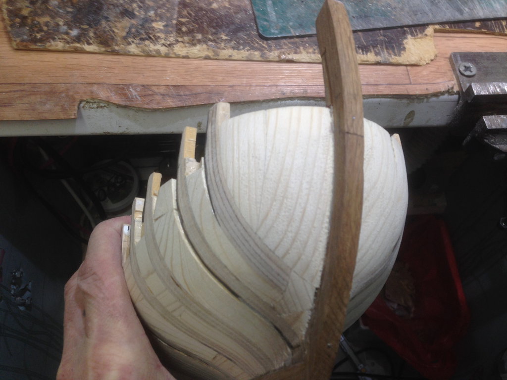 Всем привет ! Среднюю часть корпуса собрал, ободрал на черно пока.......... далее буду делать киль, форштевень и архштевень уже из дуба......... потом уже буду собирать носовую и кормовую часть болвана.....