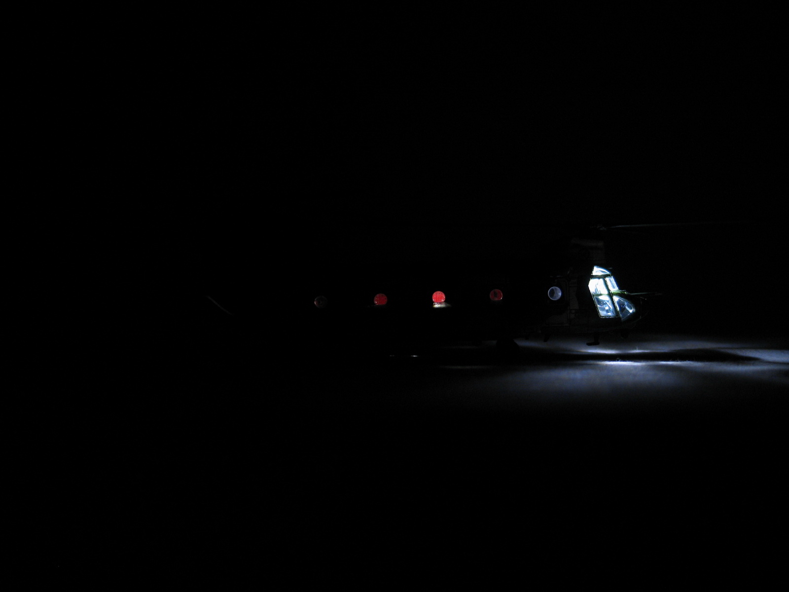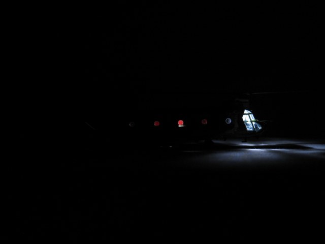 После снятия масок с остекления выясняется, что они вовсе не безобидны. Все окошки пошли разводами и помутнели. Чуть позже попытаемся отмыть это безобразие, а пока добавим к оснастке вертолёта пару посадочных фар и самодельный маячок на киле: