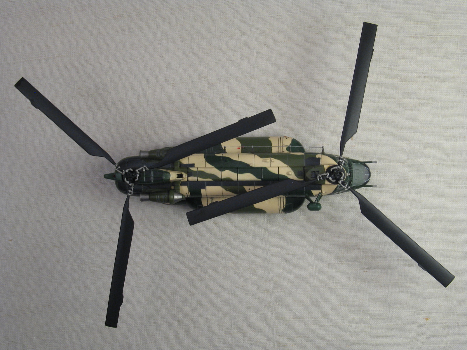 Во-вторых, несущие винты окрашены производителем без предварительной зачистки облоя, следов питателей и сдвига пресс-форм. Это уже хуже. Приходится выполнить зачистку поверх красочного слоя, после чего подкрасить прорехи, а в тон, как всегда, не попасть. Опять же, ничего не попишешь...