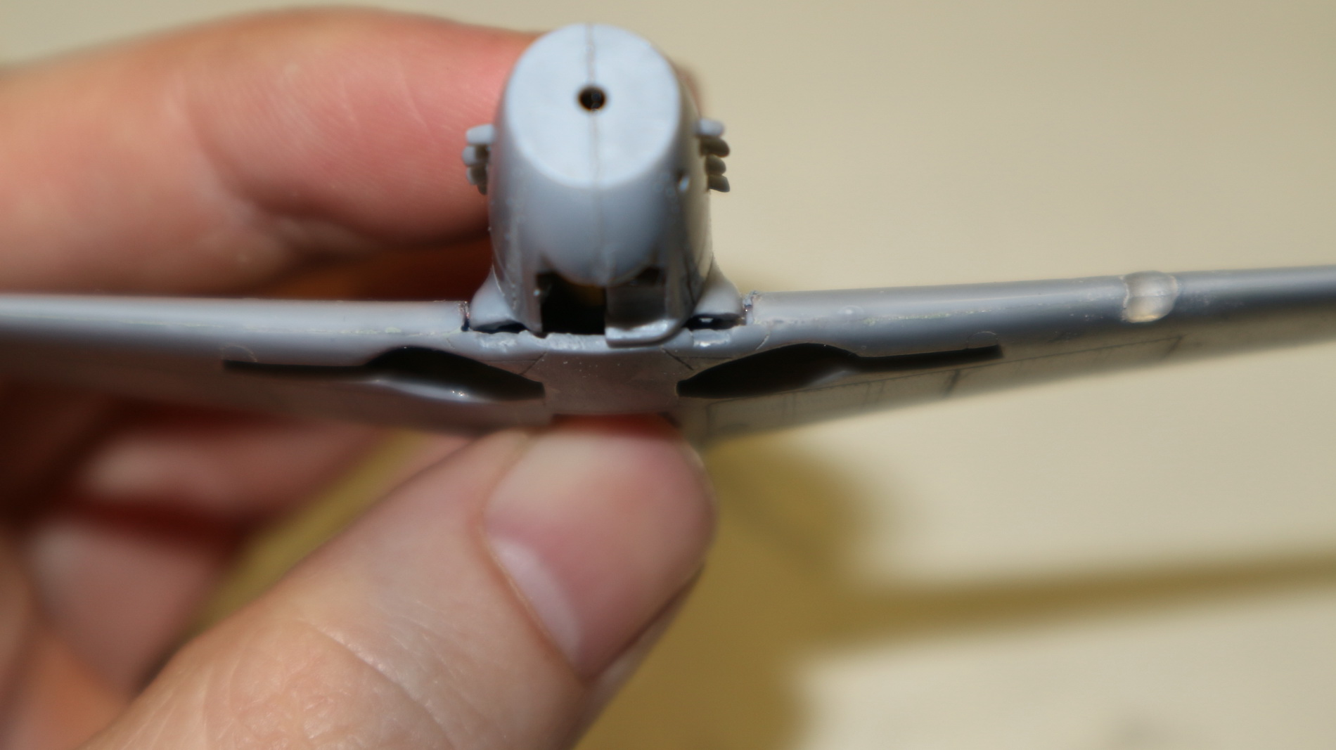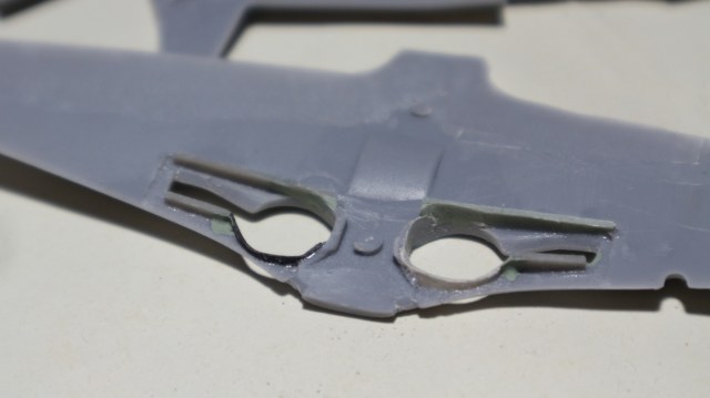 Сделал БАНО на крыльях. По лучшим рецептам - рассверлив дырдочку и залив туда краску. Наклеил брусочек на место и обтесал. Зер гуд. То-же самое проделал с прожектором.