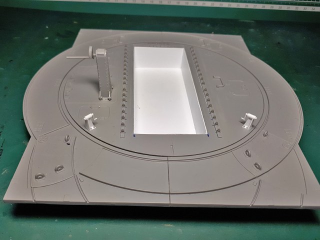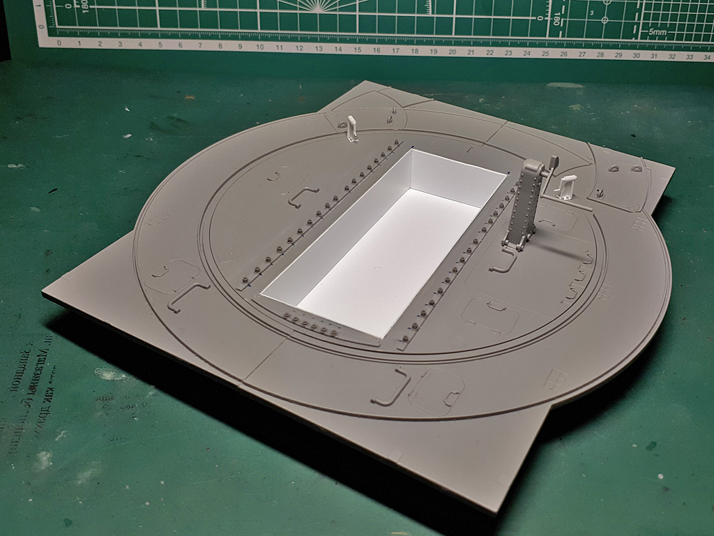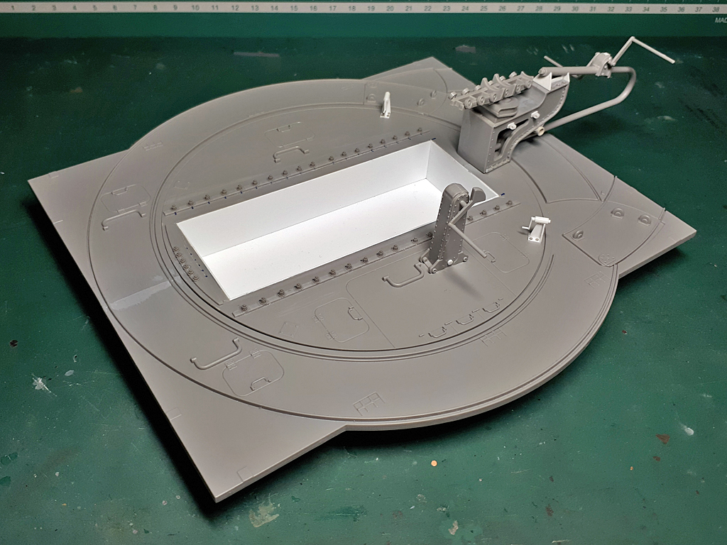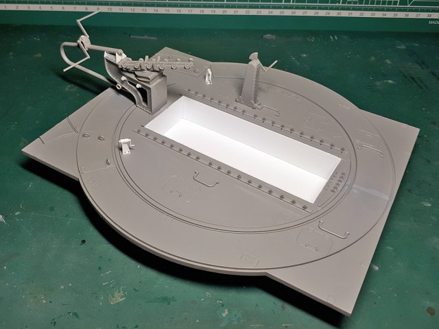 1. Сделал приямок для отката ствола во время выстрела. Фотографий его найти не удалось. Да и скорее всего их и нет. Поэтому, учитывая, что на модели яма эта практически не будет видна, сделал ее упрощенно, без внутренней деталировки.