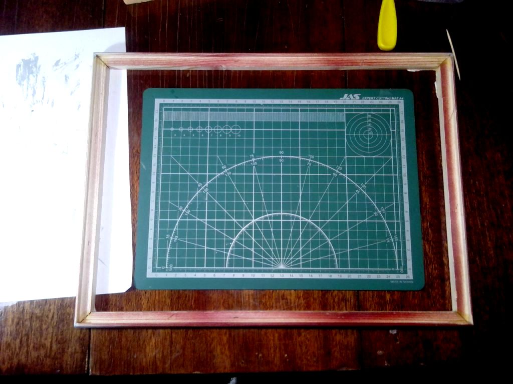 Есть фоторамка,уже переделанная в подставку.Размер чуть меньше А3.