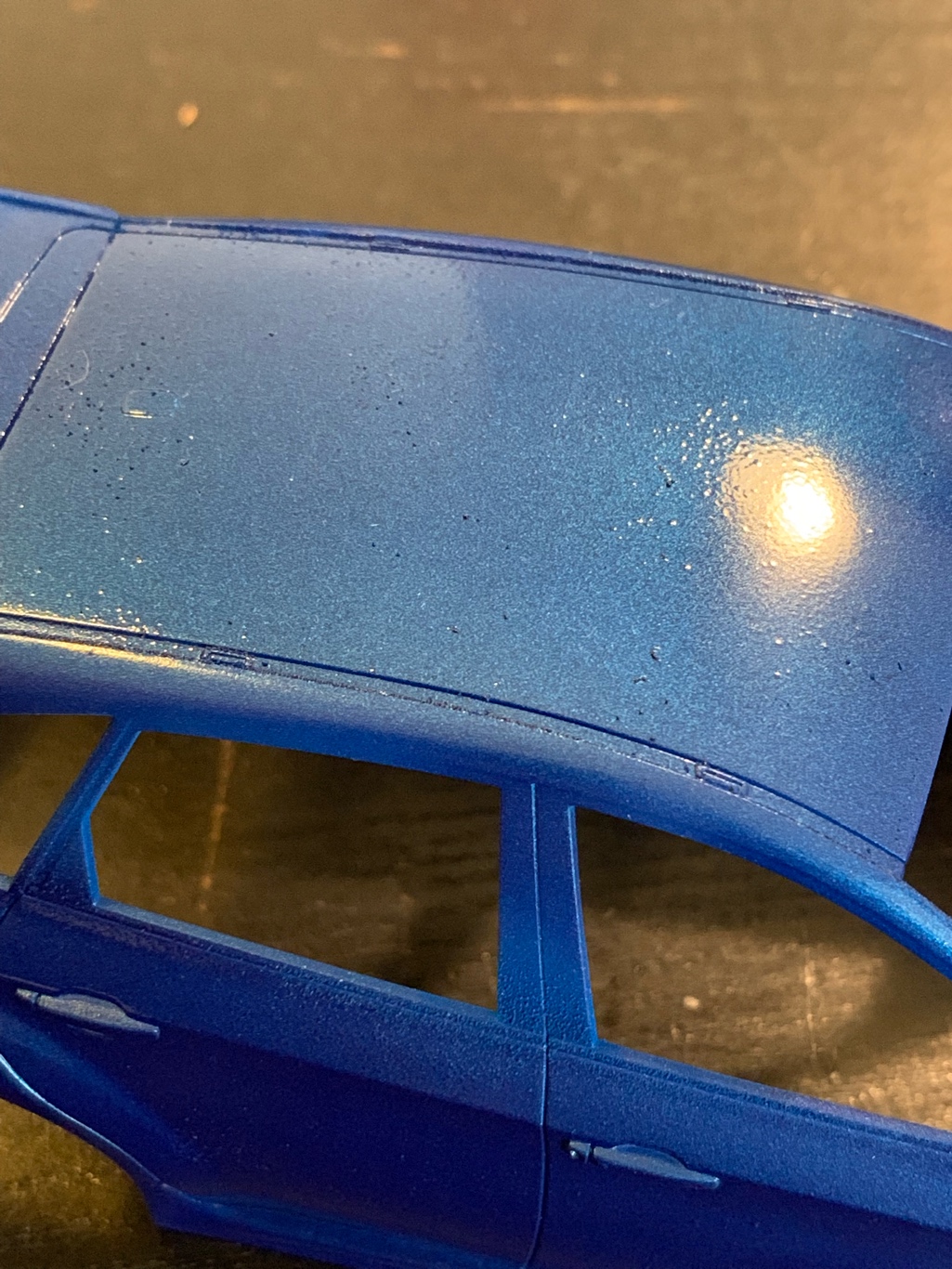 Что-то даже ума не приложу, в чем проблема. Краска лежит мокрым слоем, при этом в ней есть вкрапления, характерные для сухого опыла.