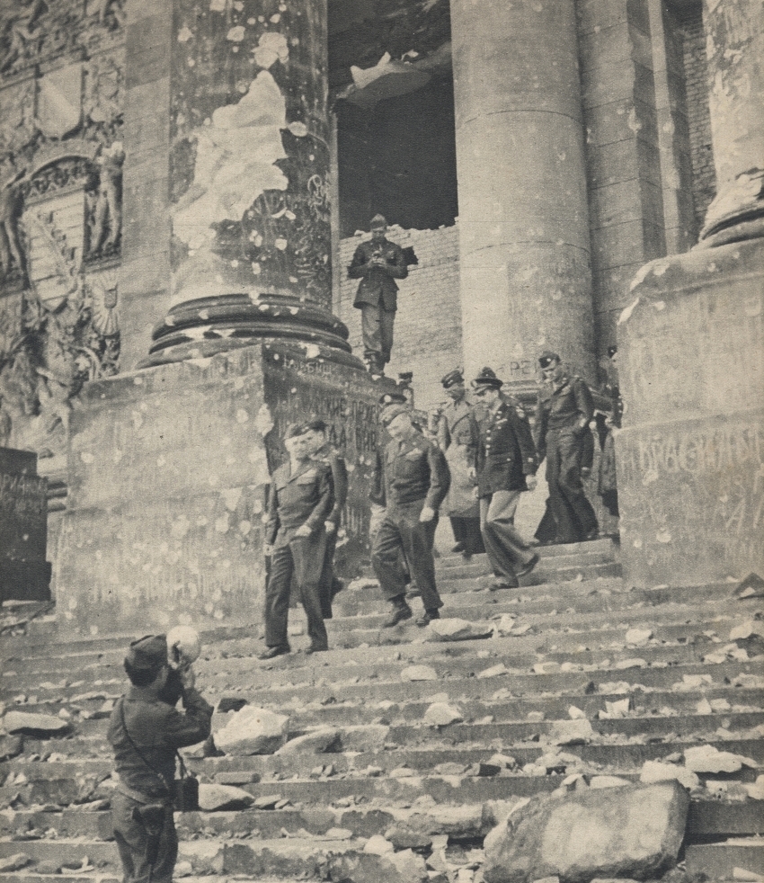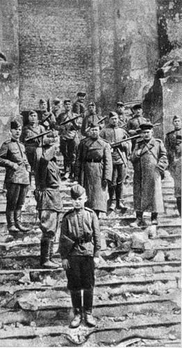 Чтобы не было скучно, покопался немного в истории сюжета. Сведения из официальных сообщений Совинформ бюро скупо описывают события так (хроника от 30 апреля 1945 года): " вчера .... Наши пехотинцы в ближнем бою разгромили противника, достигли Цельтен-аллее, а затем предприняли штурм здания германского рейхстага с запада. Одновременно наши части, вышедшие на набережную Рейхстатс-Уфер, ворвались в рейхстаг с северной стороны. Бои продолжались, не стихая, всю ночь. Сегодня в четырнадцать часов советские бойцы «владели зданием .немецкого рейхстага и водрузили на нём знамя победы.