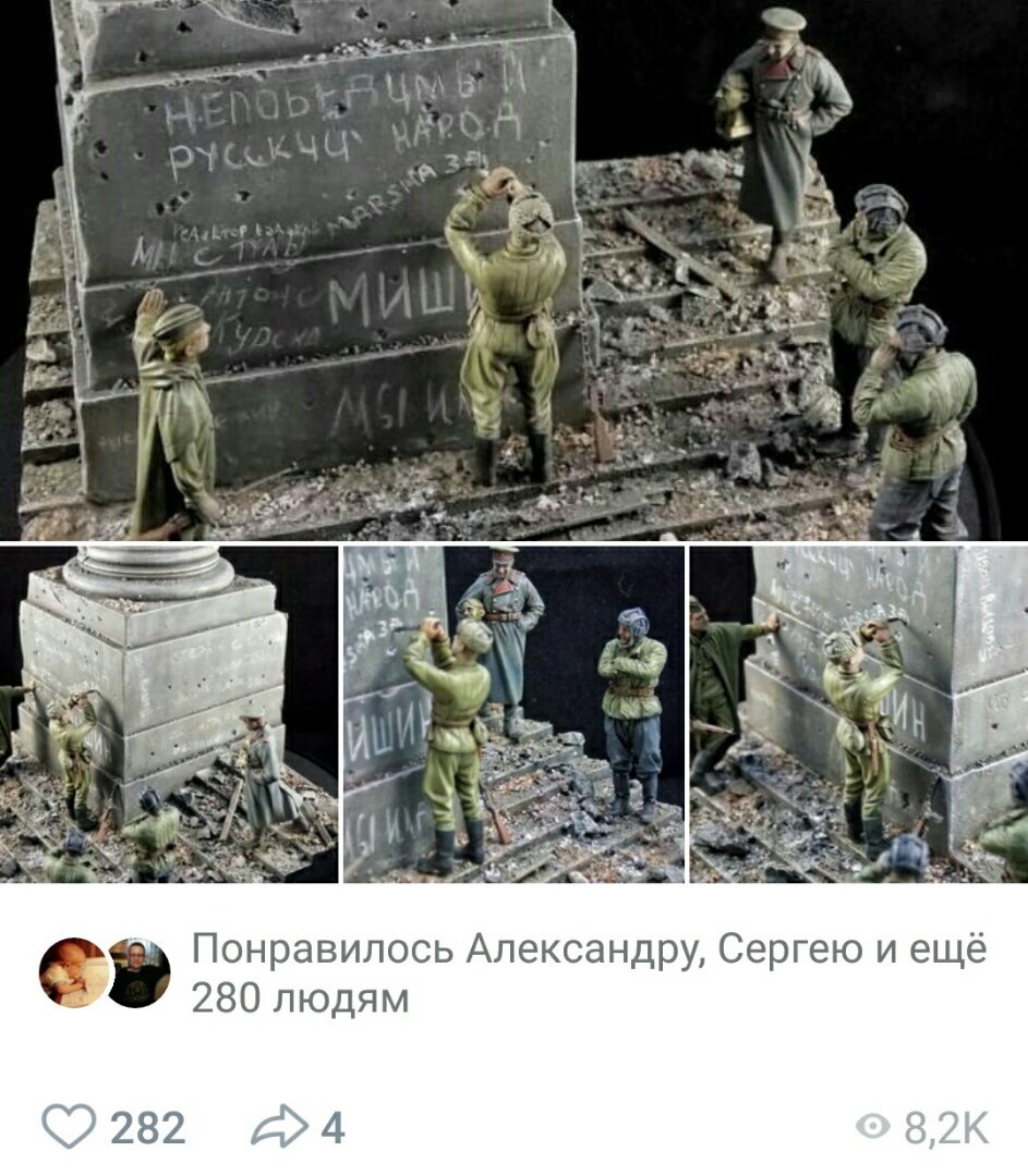 Еще брошу ссылку на диораму Антона Капацины https://diorama.ru/gallery/dioramas/876/. Вот это примерно я хочу сделать на своей диораме. Бойцов не во время а после тяжелого боя. Типа "Последний штурм" уже позади.