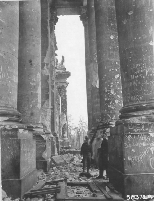 Наткнулся на такую работу в сети. Захотелось опять вернуться к теме Рейхстага. Только уже не хочется изображать штурм, а вернуться ко времени надписей. Все-таки такой сюжет пропадет