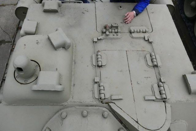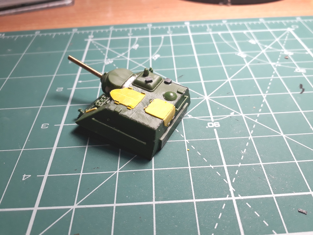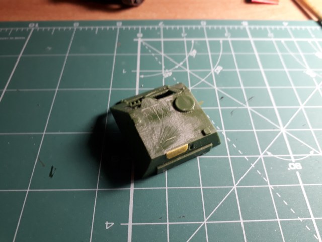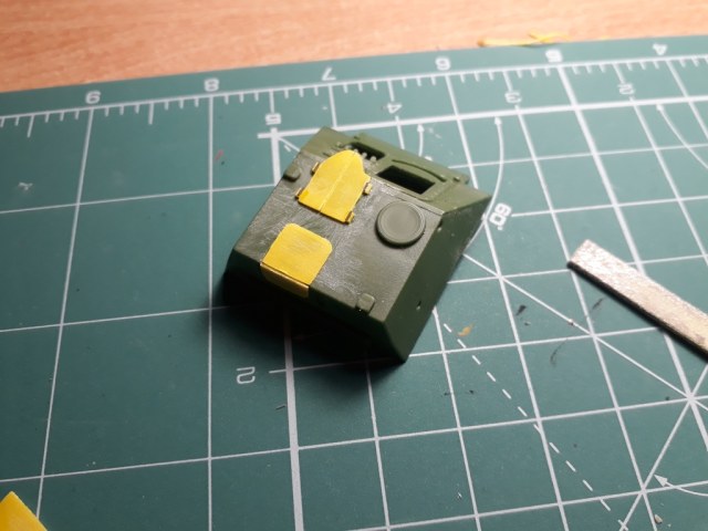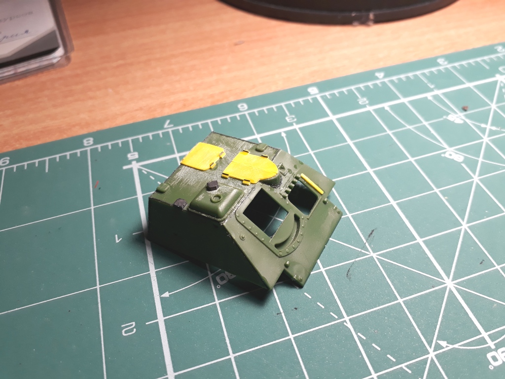 Далее неспешно "обварил" рубку и сделал два недостающих триплекса (вернее один из них, который на комбашенке был дан UM, но развернут был он не туда. Пришлось резать по-живому...). Если полностью ориентироваться на СУ-85 то триплексов должно было быть три, но на этом фото видно что триплекса смотрящего вперед на прототипе нет.