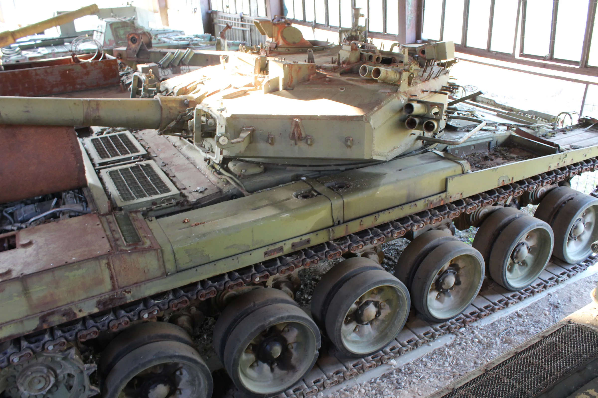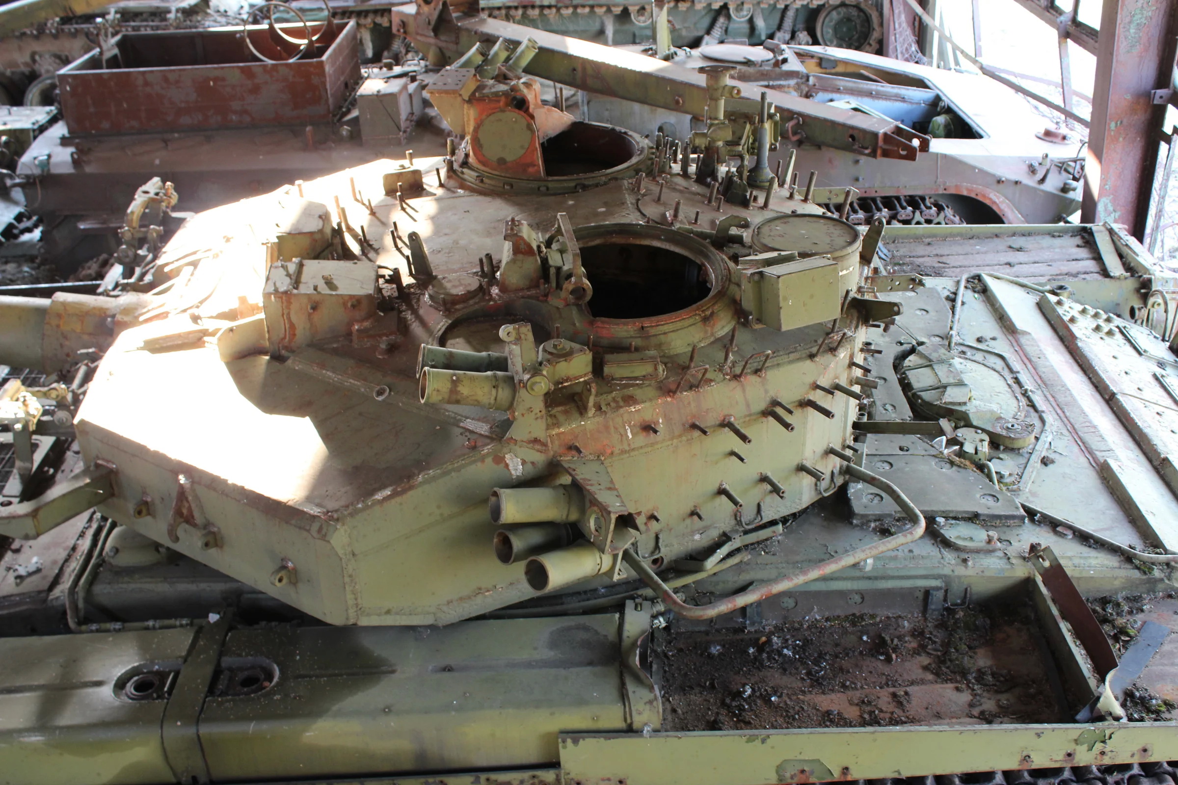 Траки, ленивцы, звездочки, дульный тормоз, что там было на крыше башни с прицелами вообще непонятно, корпус, все что на полках и т.д. Там очень много всего нужно делать сновА. И это при том что нормального фотоотстрела еще не разграбленных машин нет.