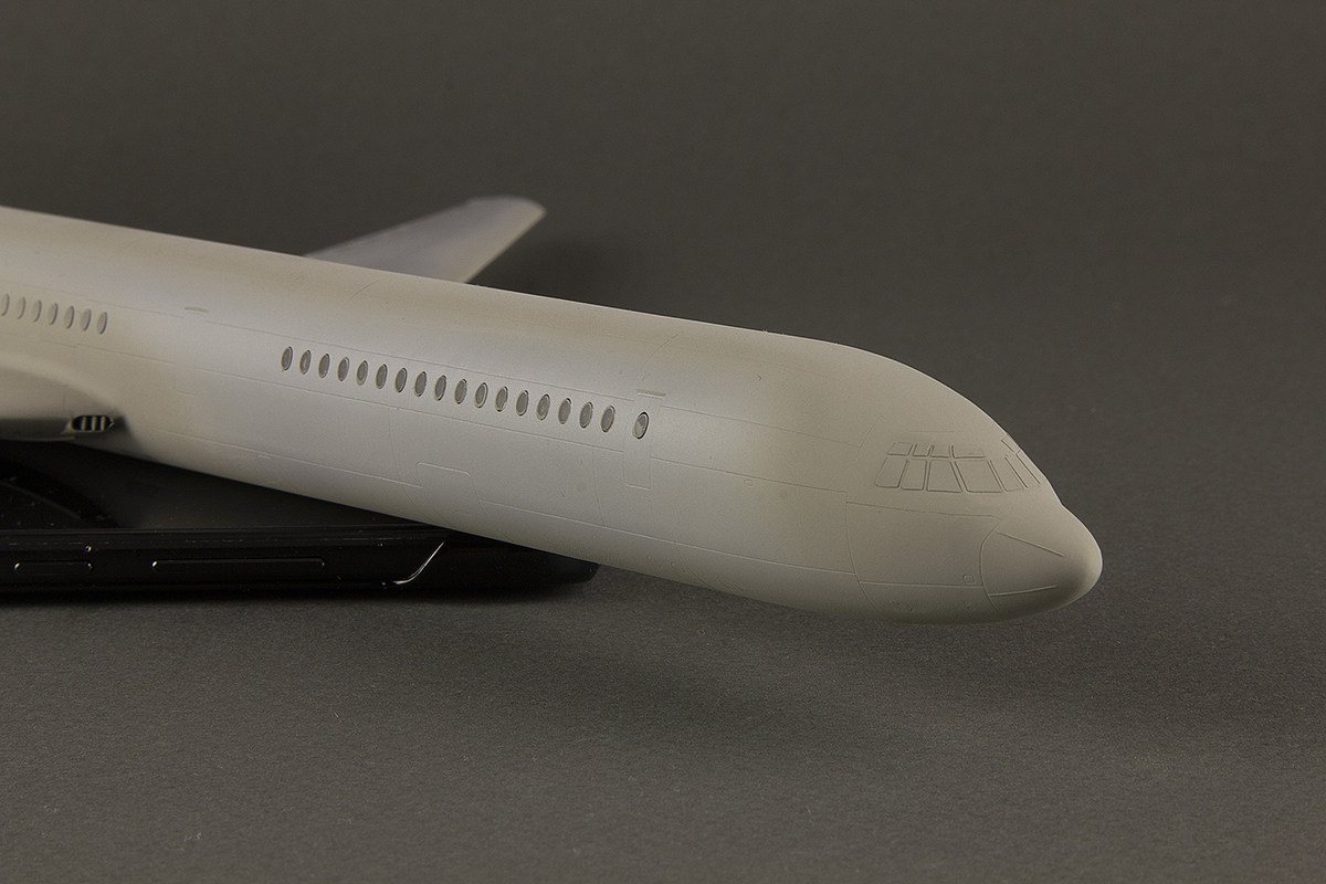 Проснулся, понимаешь, в выходной рано, позавтракал и в предвкушении того, как буду снимать маски с иллюминаторов, начал маскировать самолет для покраски в белый цвет. До этого модель была задута в серую базу (я еще не знал, что жестко пролетел с оттенком серого, но, сравнивая с фото, тогда казалось, что все в порядке...)