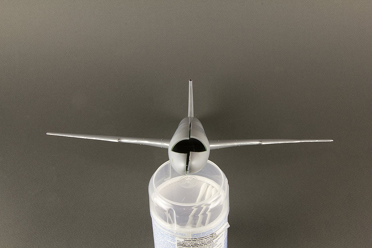 Первые проблемы. Крыло в наборе оказалось отлитым с дифферентом. Я думал, что при склейке оно исправится, но ничего подобного.Результат был примерно таким:
