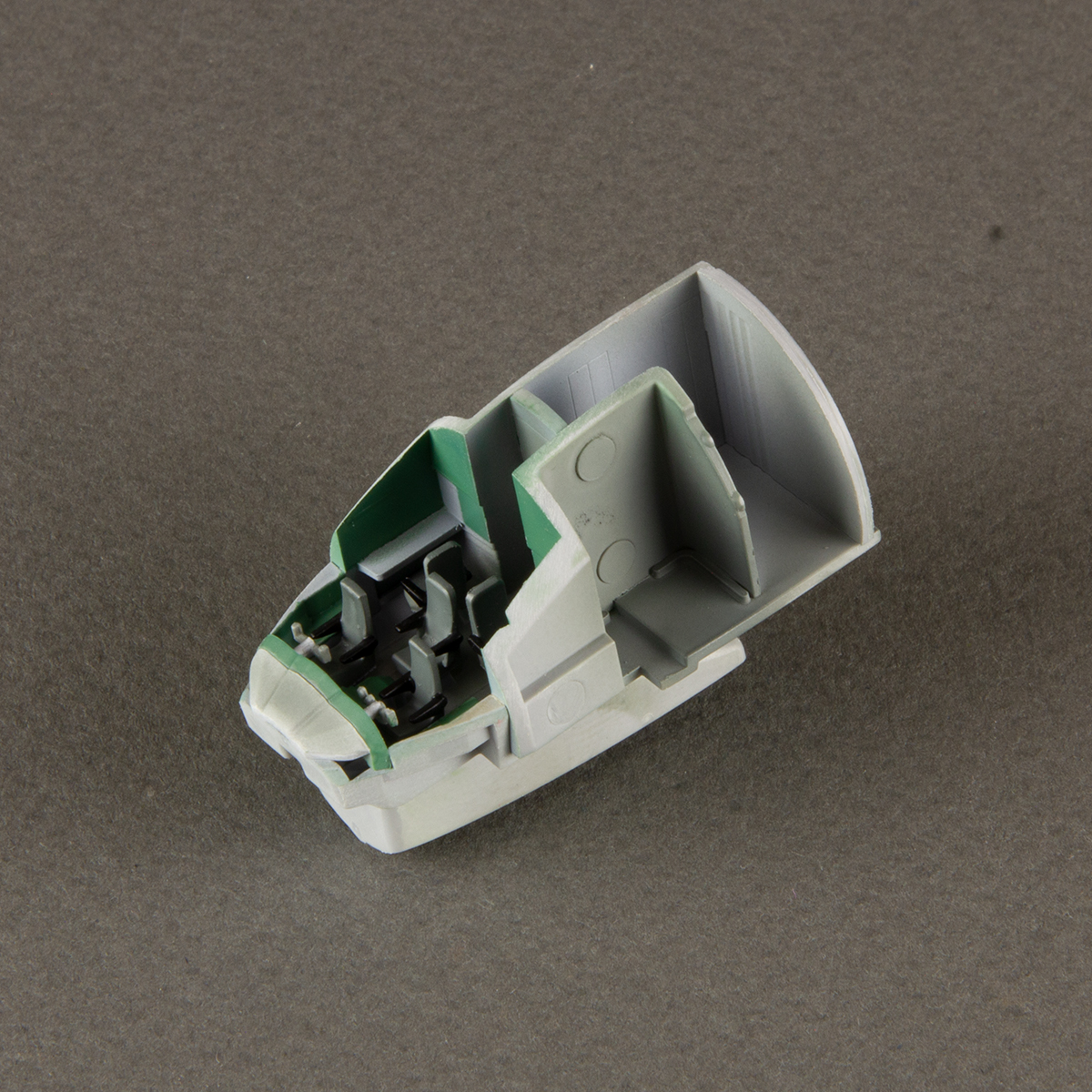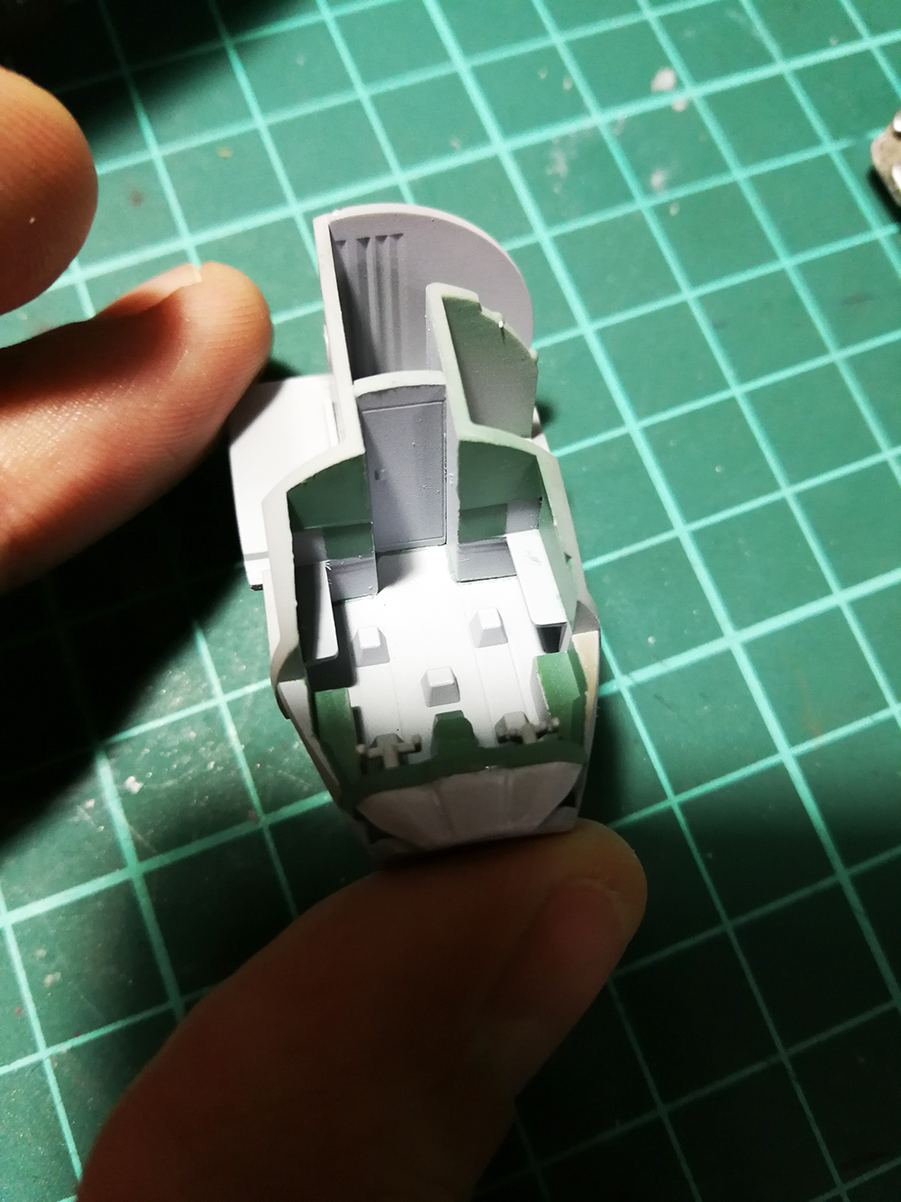 Несколько раз шпаклевал стык половинок корпуса снизу. Вот уже казалось бы, что все, поверхность идеально гладкая, но грунт все равно "твердил" одно и то же - шов проступает. Зачистил в последний раз и на этом, наверное, всё, пускай так будет.