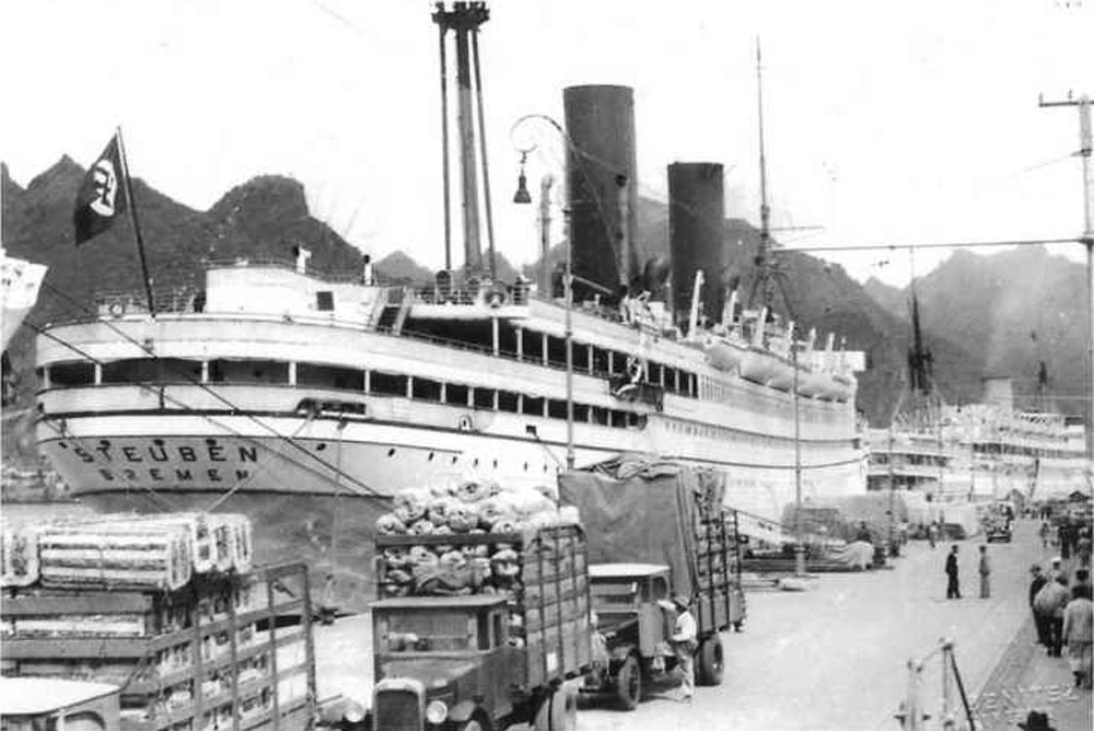 Вот, кстати, Гитлер на торжественной церемонии спуска на воду злосчастного лайнера.
