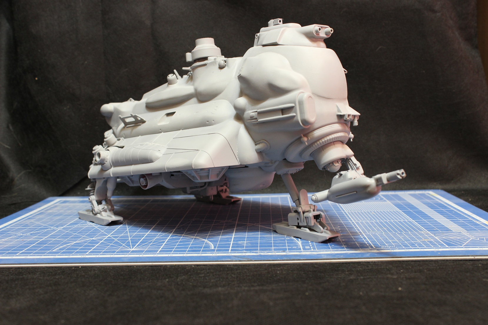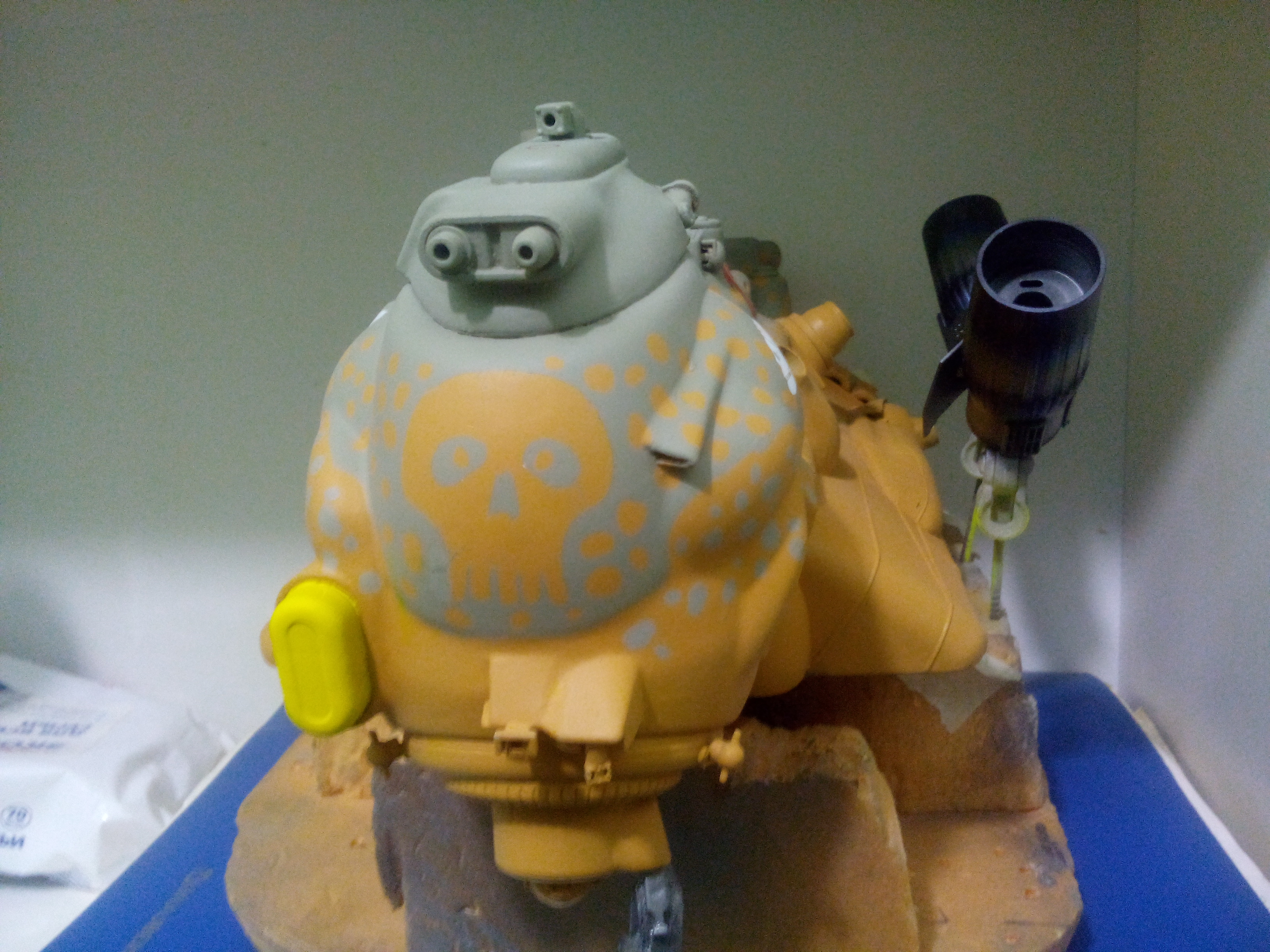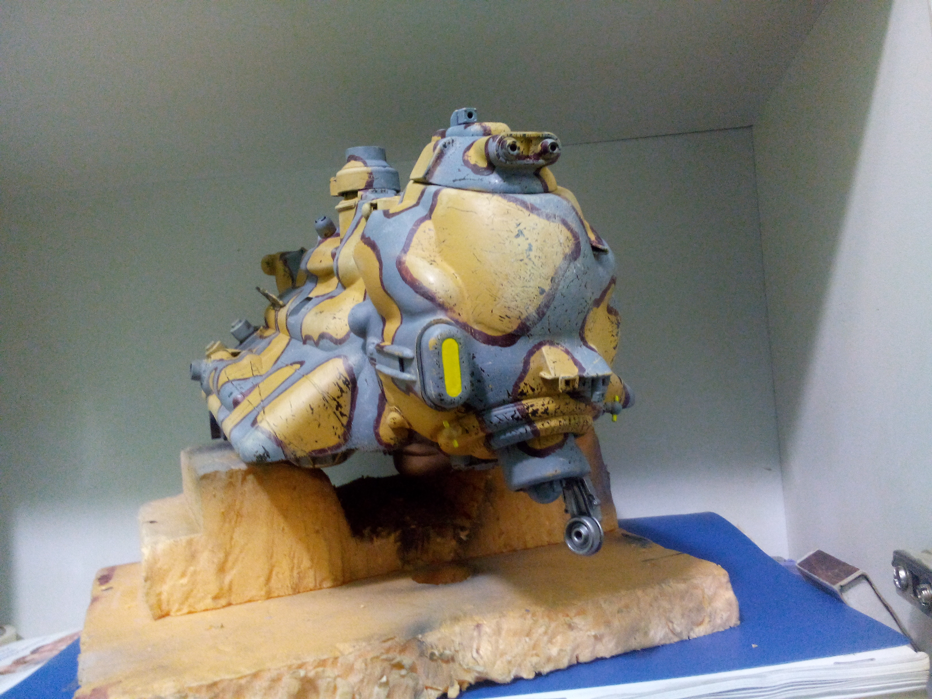Загрунтовал Тамиевской грунтовкой. Изделие стало выглядеть рельефнее и интереснее. Теперь стоит вопрос выбора схемы окраски - либо на Луну (БД на Луне) - либо на Землю (БД на Земле). Пузо точно будет цвета Ган Металл с тонировкой. Сильно потертый делать наверное не стану, так тонирну немного. Ржавчина будет только на металлических деталях, ибо по версии авторов данной вселенной основная броня на подобной технике - из суперкерамики.