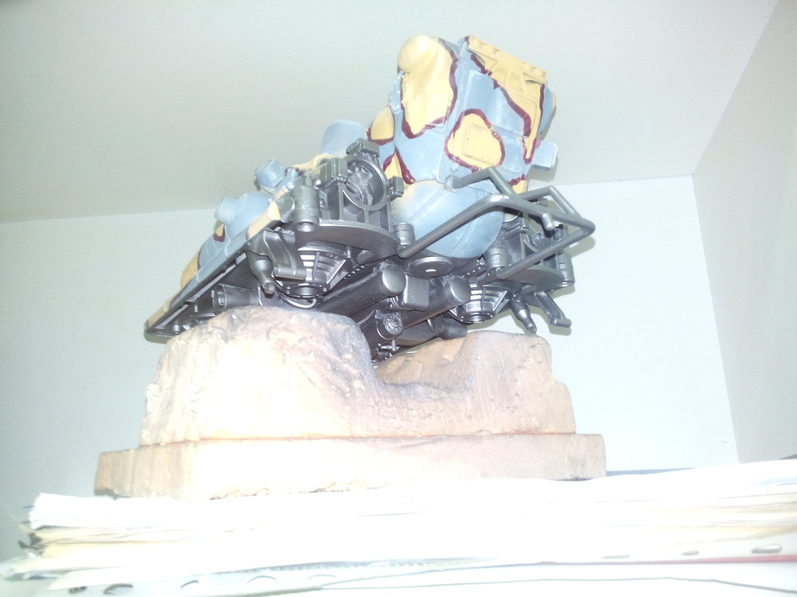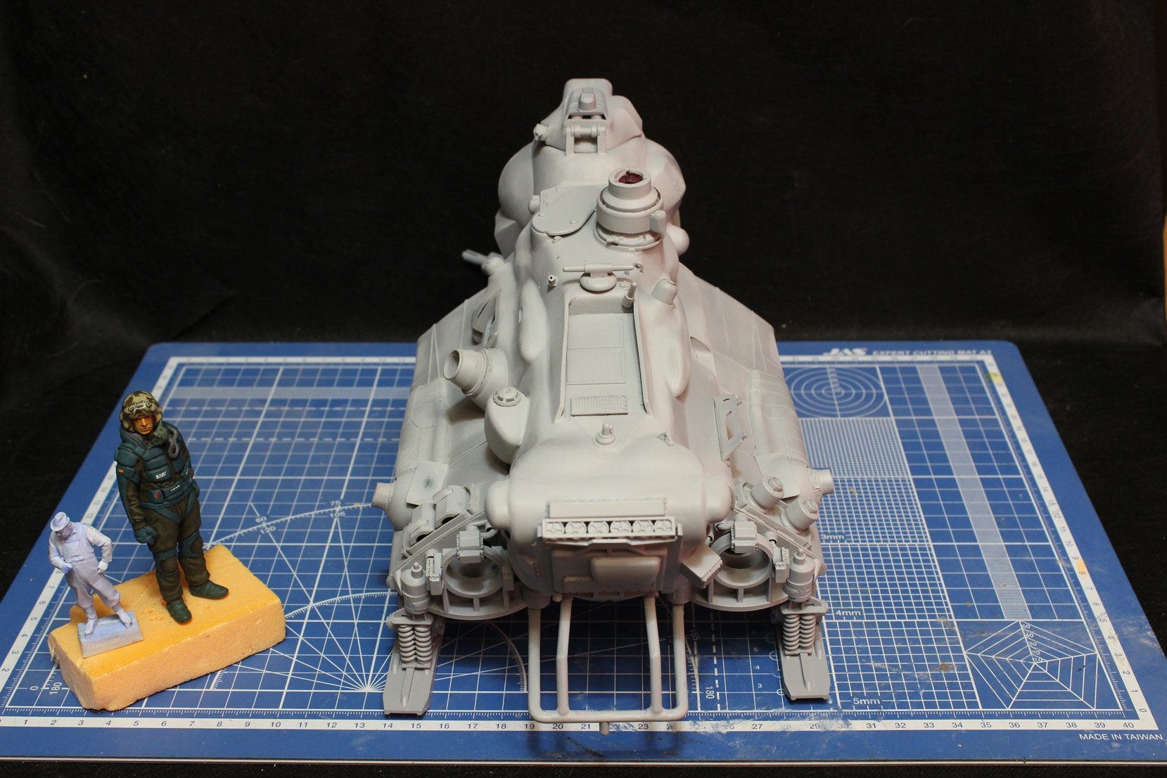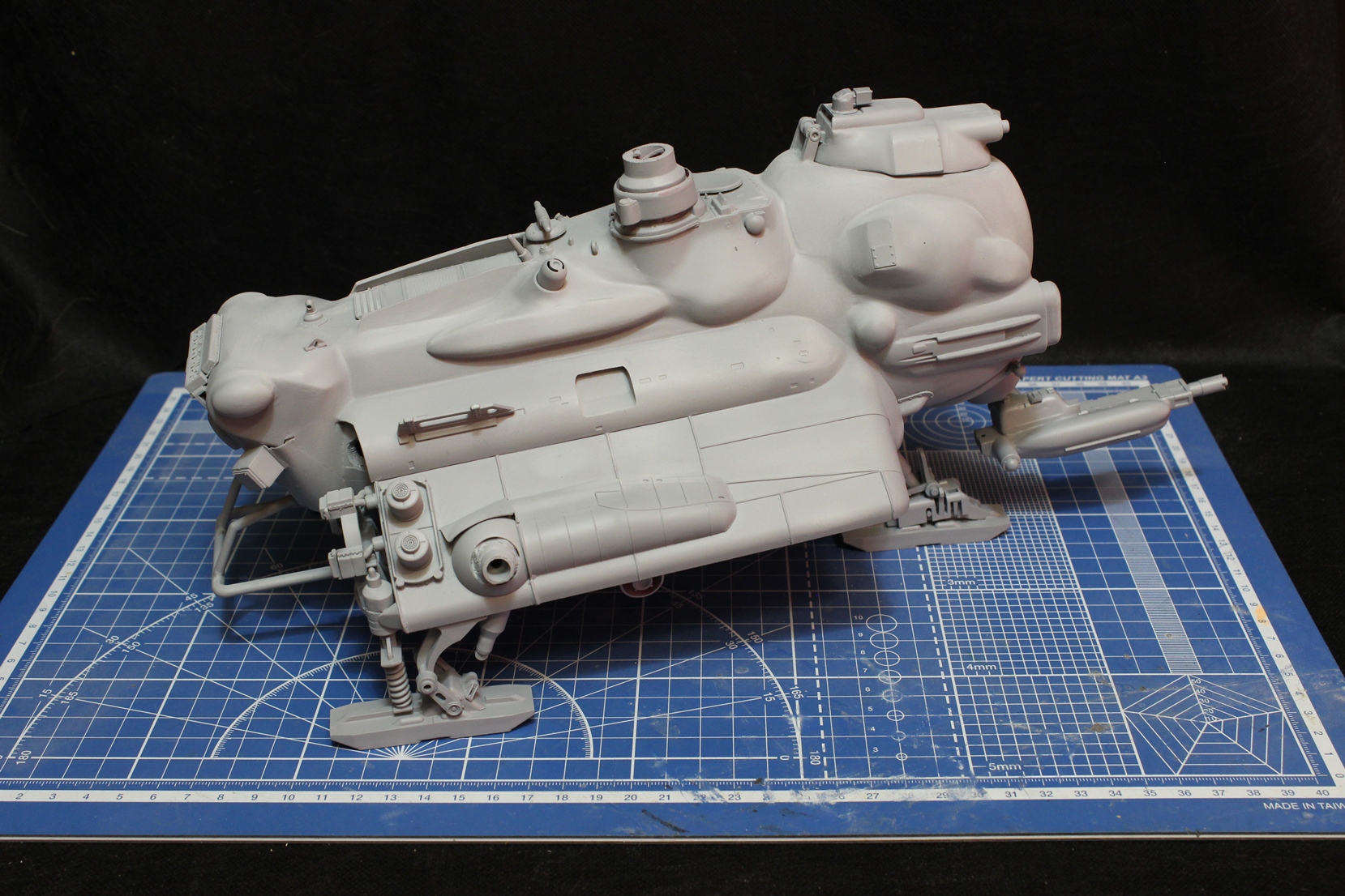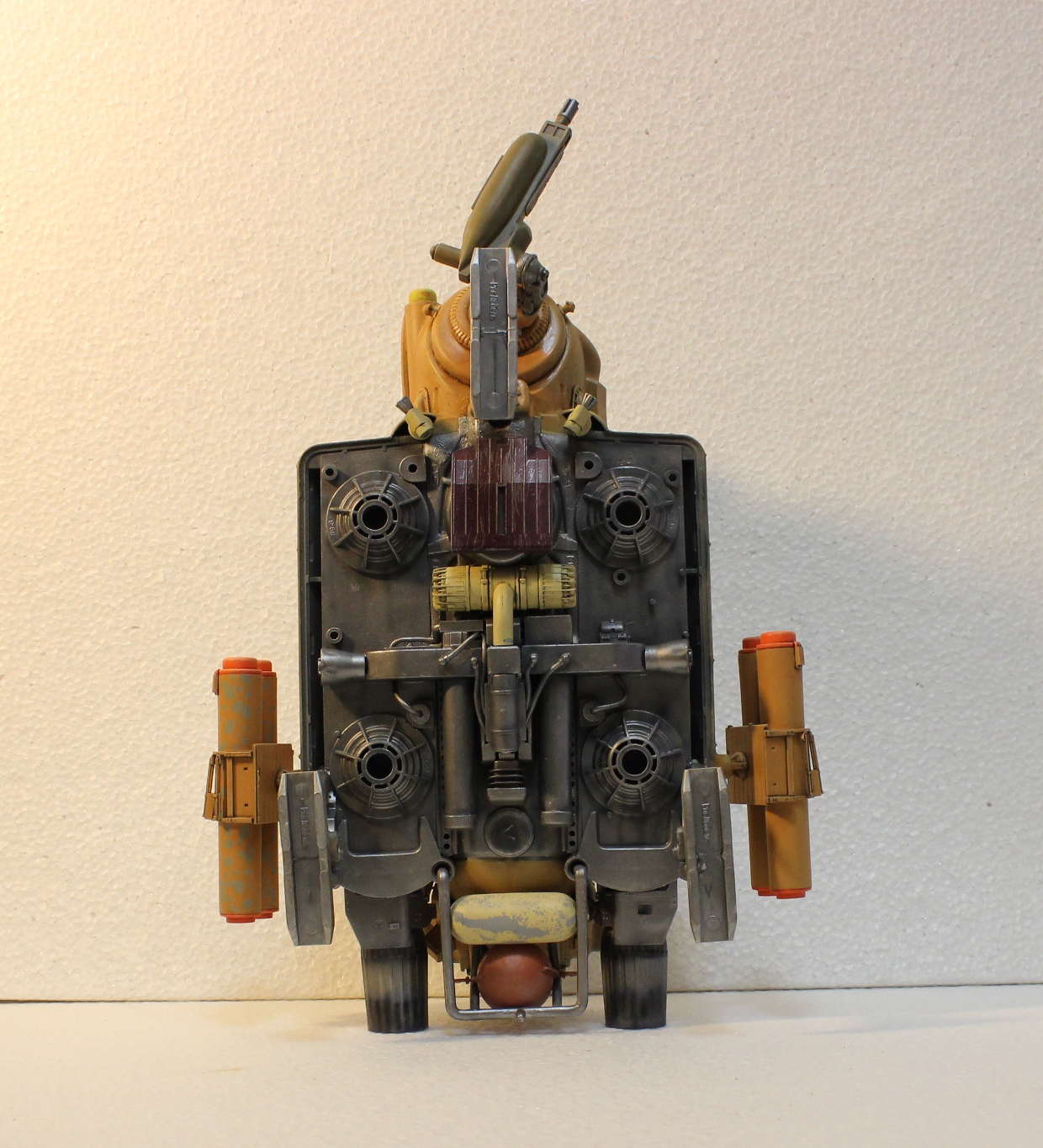 Загрунтовал Тамиевской грунтовкой. Изделие стало выглядеть рельефнее и интереснее. Теперь стоит вопрос выбора схемы окраски - либо на Луну (БД на Луне) - либо на Землю (БД на Земле). Пузо точно будет цвета Ган Металл с тонировкой. Сильно потертый делать наверное не стану, так тонирну немного. Ржавчина будет только на металлических деталях, ибо по версии авторов данной вселенной основная броня на подобной технике - из суперкерамики.