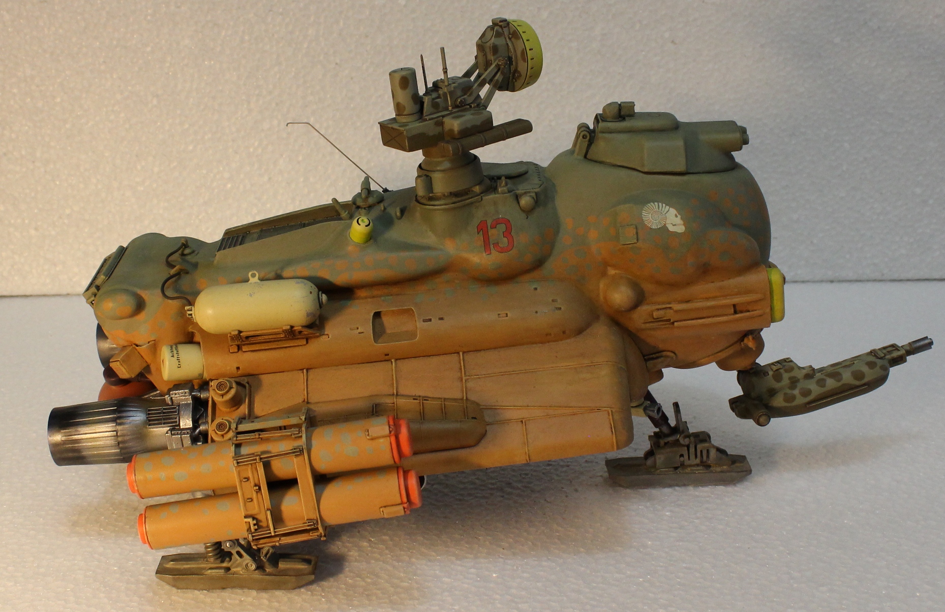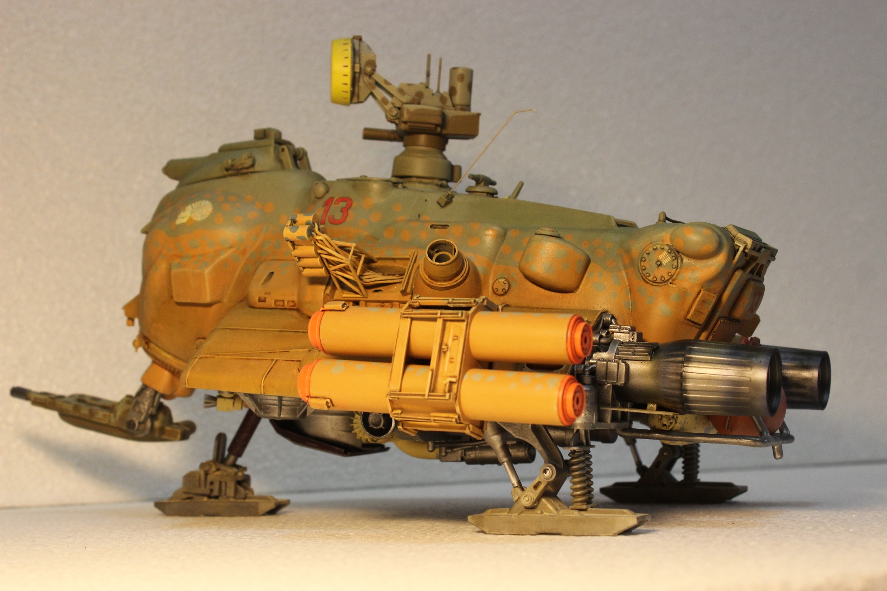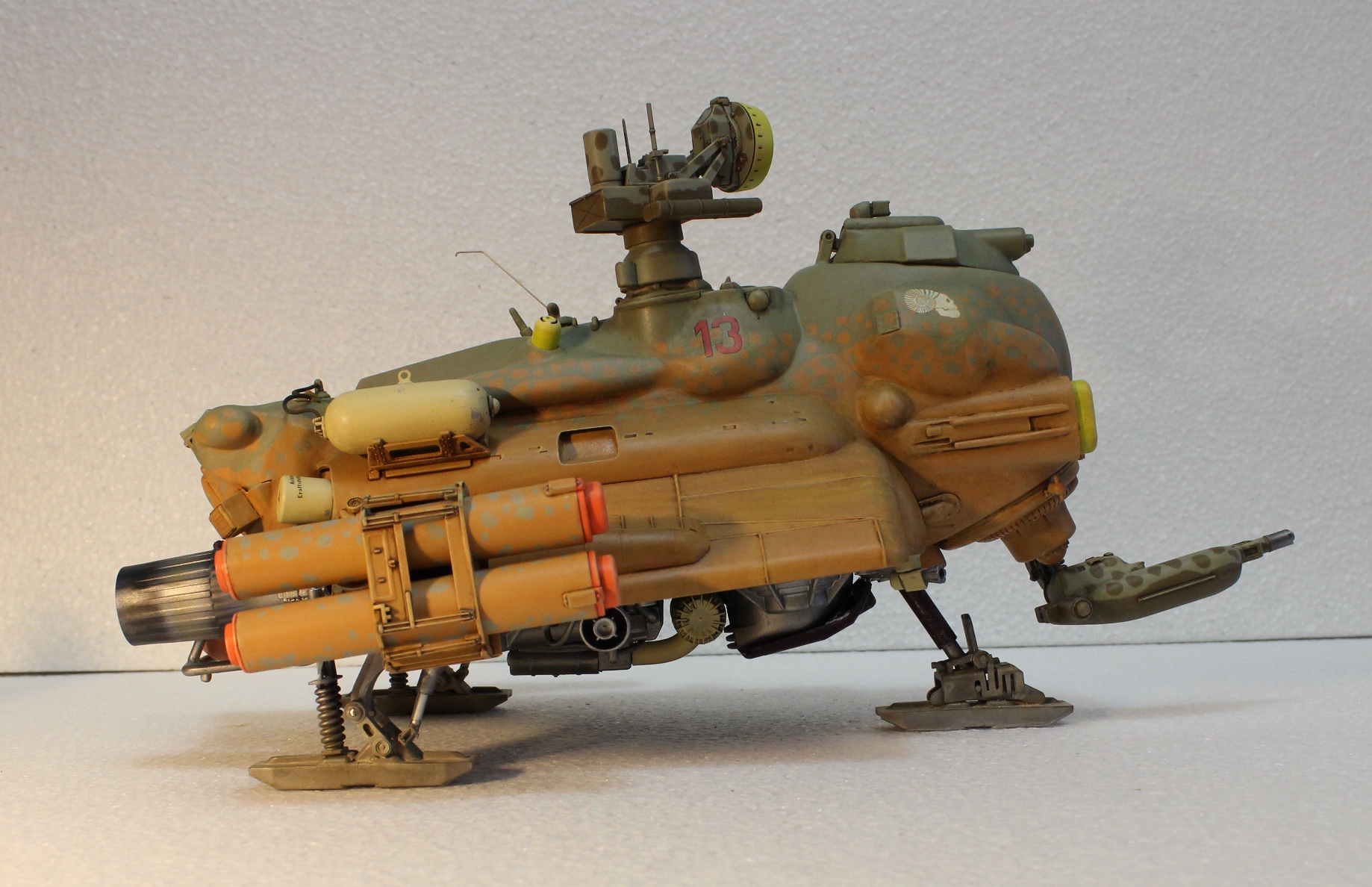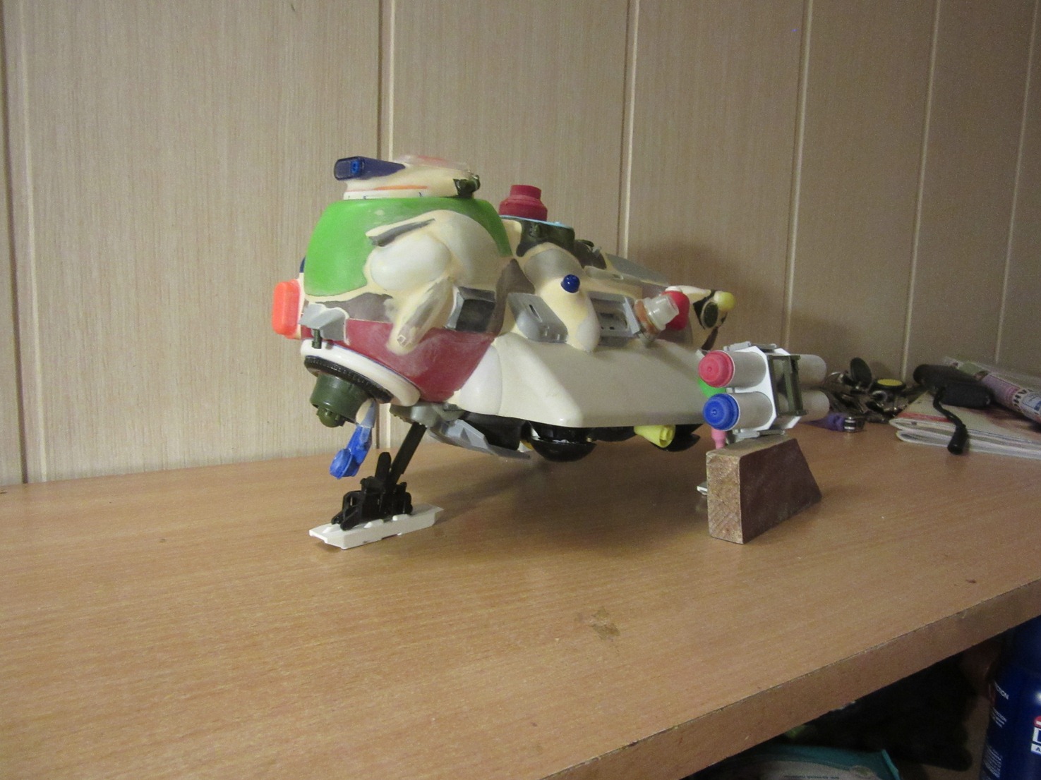 На данный момент состояние проекта таково -сварганил ракетные пусковые, соорудил турельный лазер. Изготовил пост РЛС, внешние бронебаки, стойки лыжного шасси. Осталось - мелочевка по корпусу, движки горизонтальной тяги, далее буду думать над вариантами окраски -Луна или Земля.