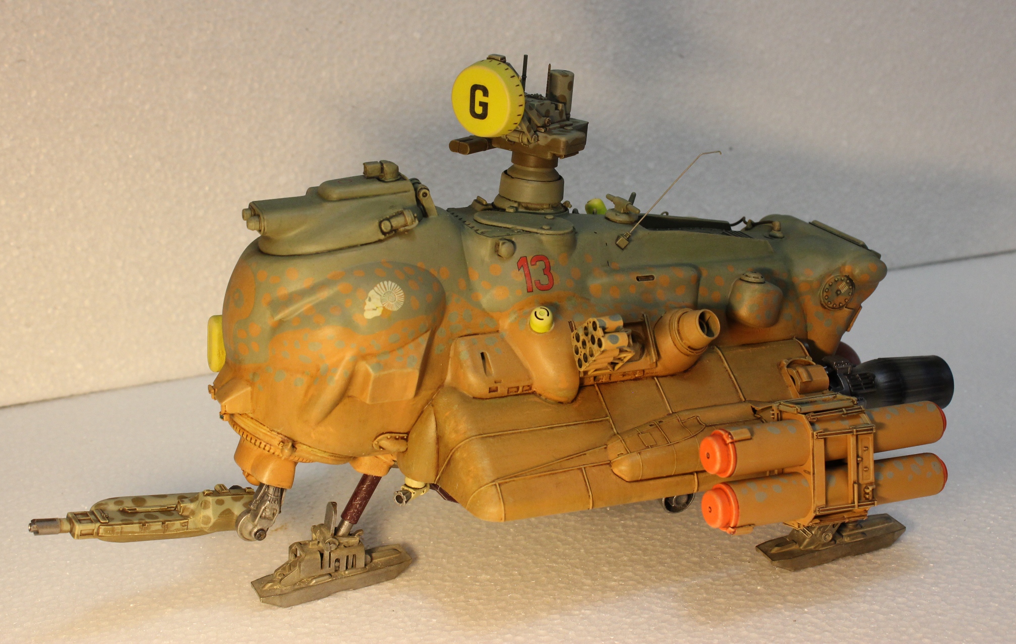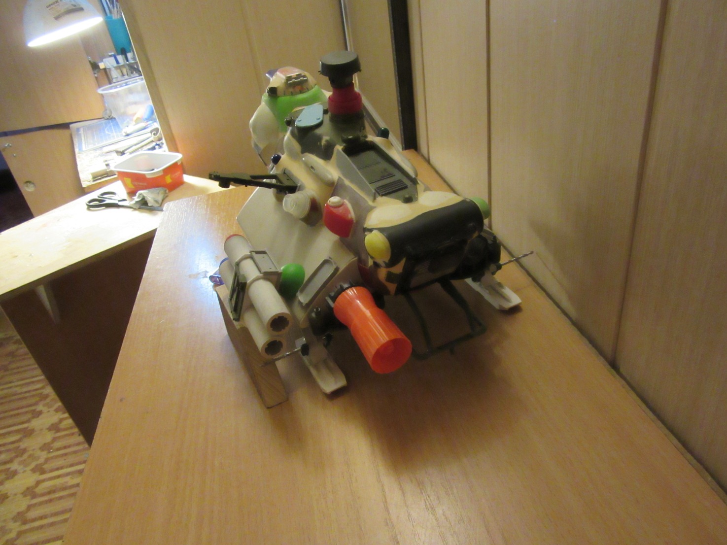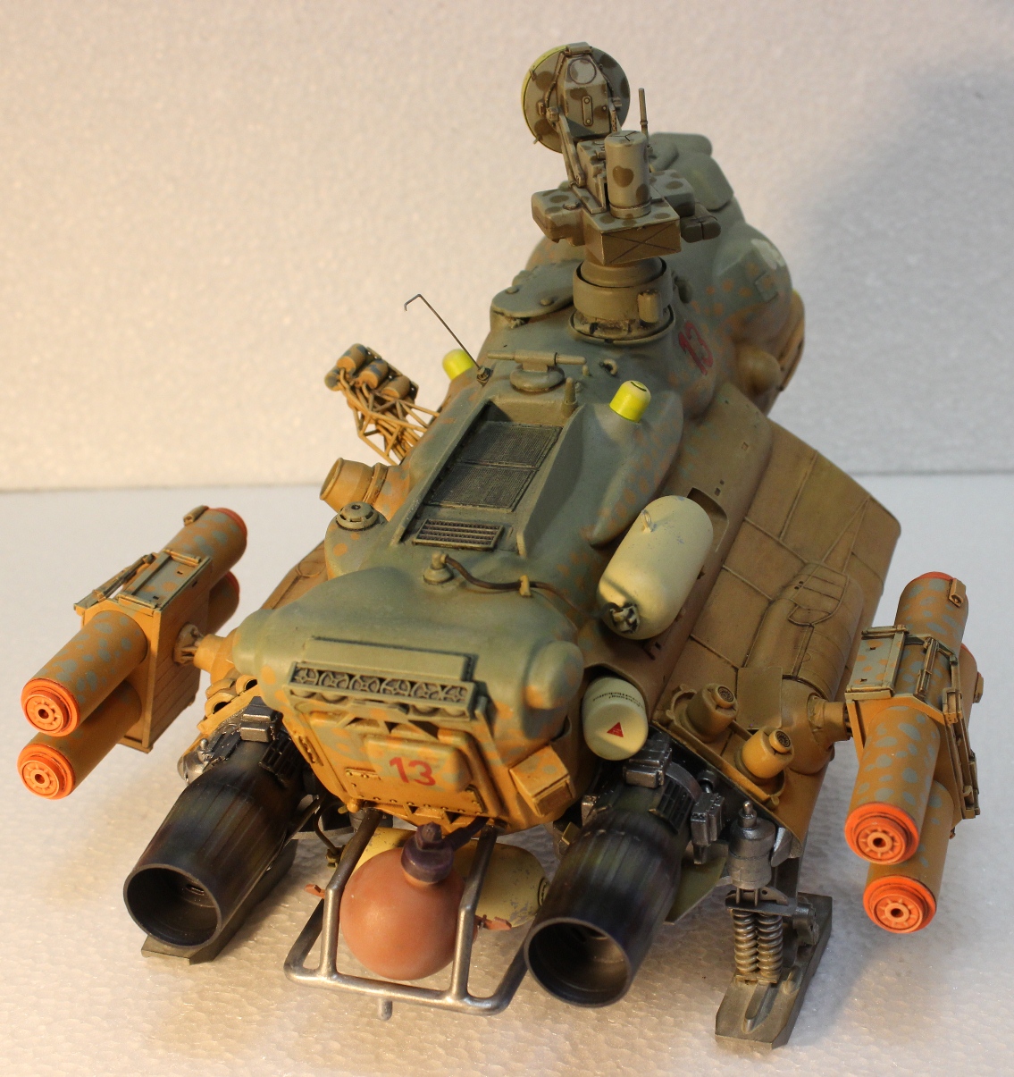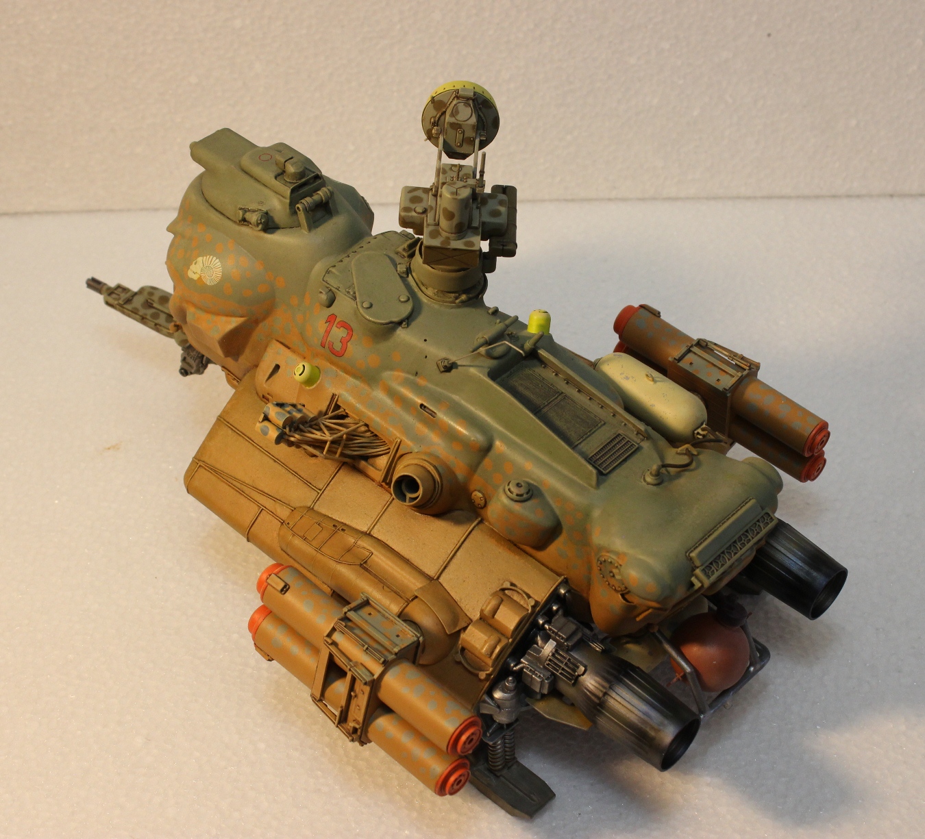 На данный момент состояние проекта таково -сварганил ракетные пусковые, соорудил турельный лазер. Изготовил пост РЛС, внешние бронебаки, стойки лыжного шасси. Осталось - мелочевка по корпусу, движки горизонтальной тяги, далее буду думать над вариантами окраски -Луна или Земля.