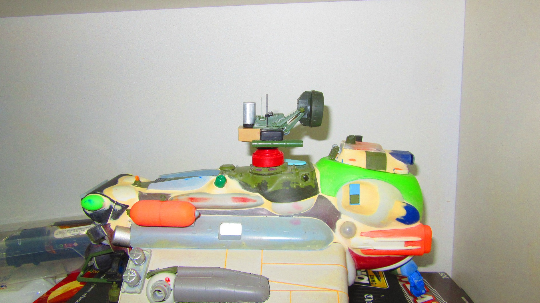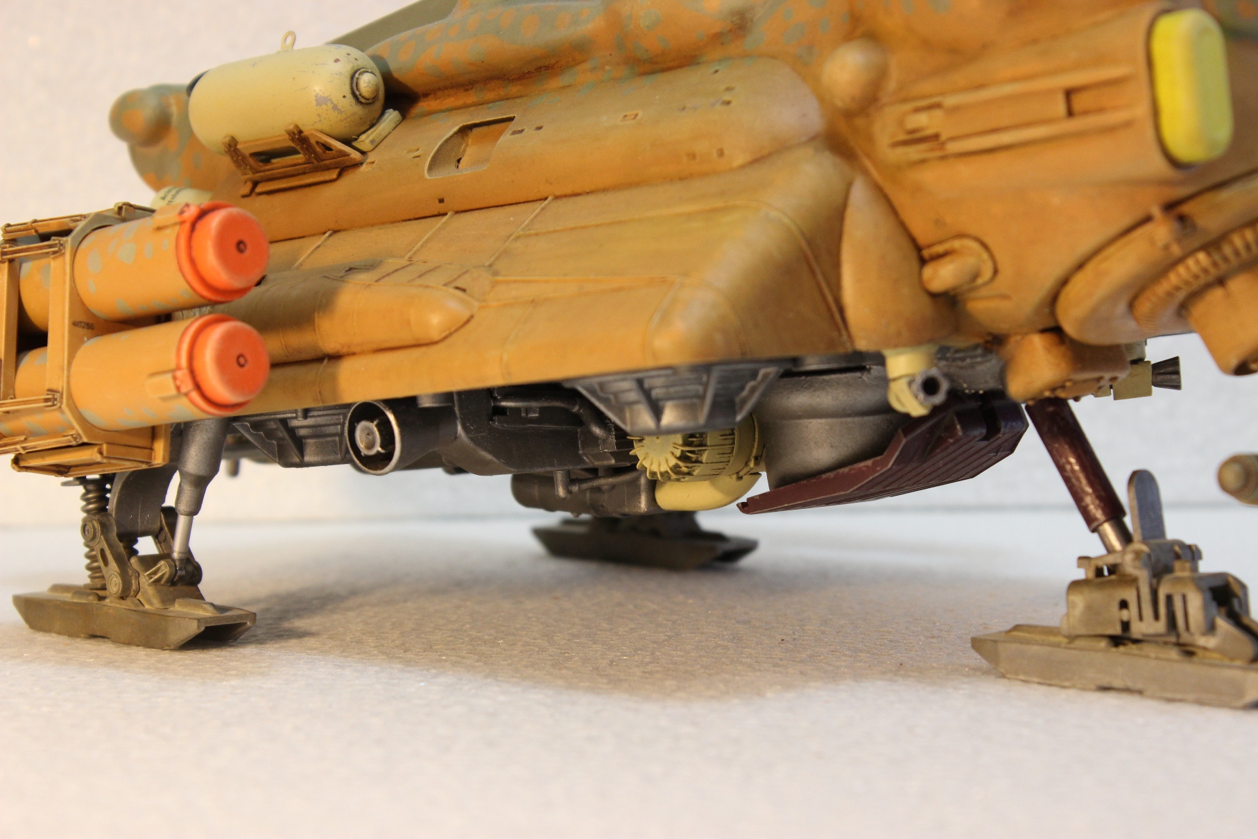 Собственно - бронебаки - черная сфера и две колбасины, оранжевая и синяя. (Пока держатся на Патафиксе), Новый вариант РЛС, турельный лазер и передняя стойка лыжного шасси.