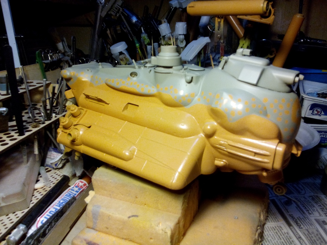 Помоему с камуфляжем я перемудрил. Перекрашивать не стану. По окончанию стройки для прикола посчитаю сколько всего деталей в изделии.