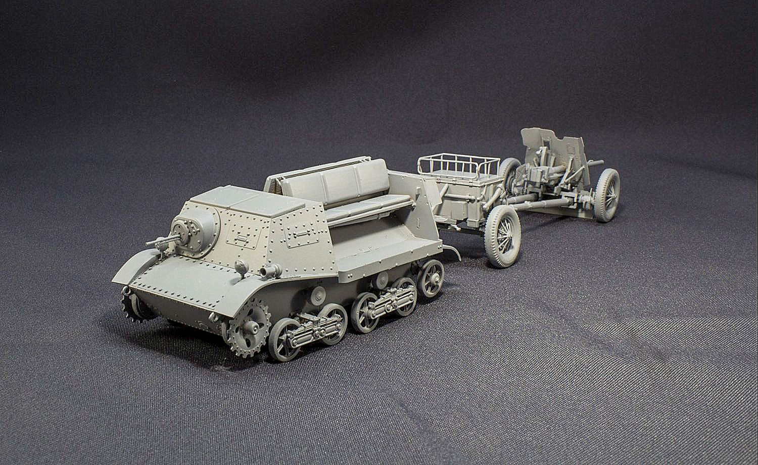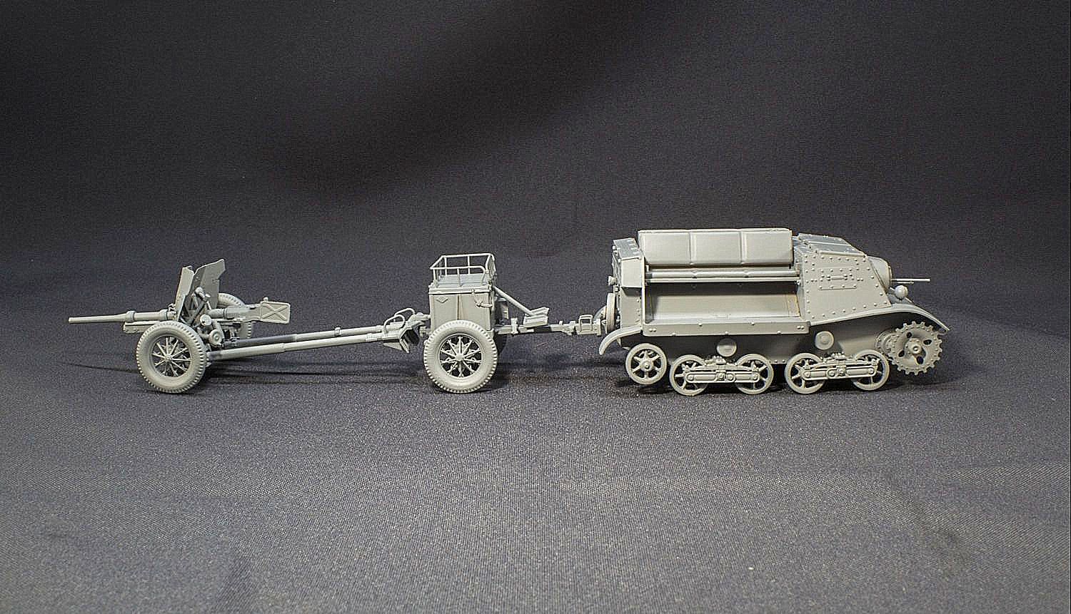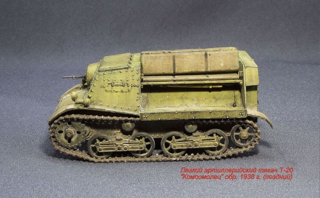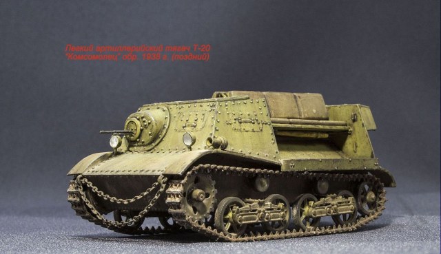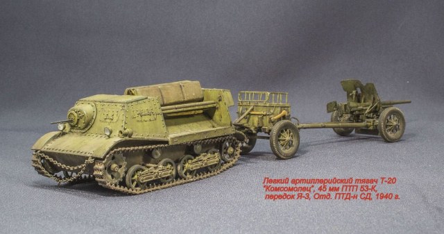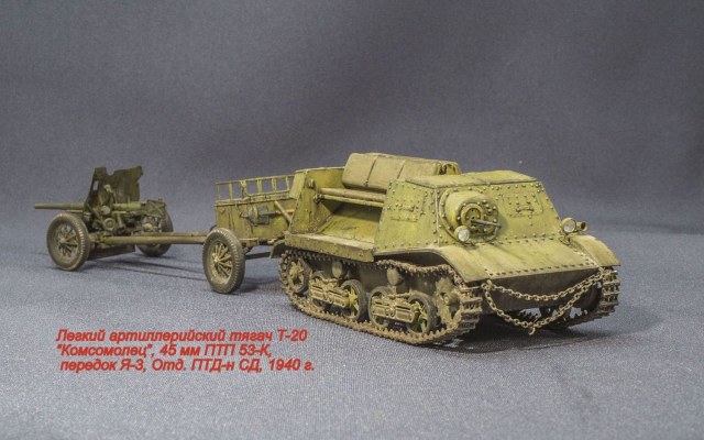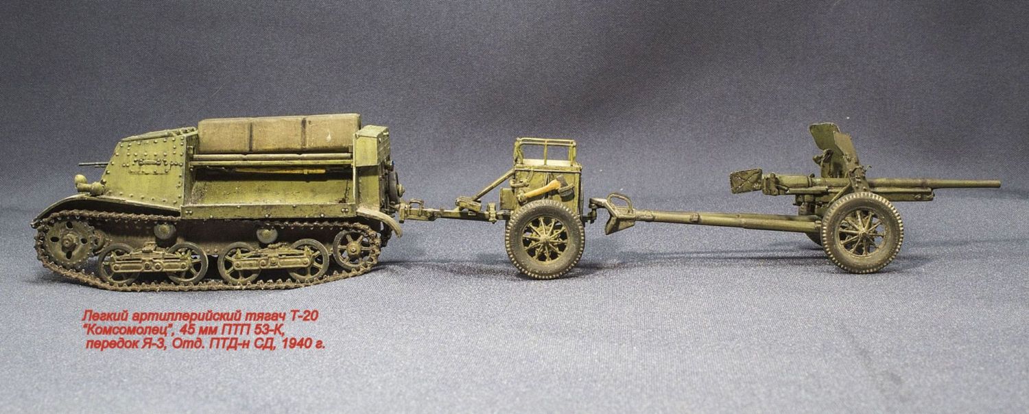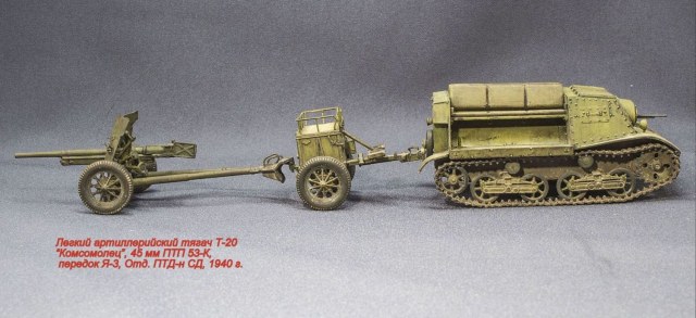 Буду строить легкий тягач Т-20 "Комсомолец" с 45-мм противотанковой пушкой 51-К и передком (по виду, как на фото).
