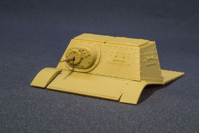На данный момент собрана ходовая, гусеницы, бронерубка с пулеметом. На маске пулемета поставлены пулестойкие болты на 0,7 от "МК", на ВЛД снесены "пупырышки" от "ХБ" и высверлены отверстия под установку болтов на 0,7 от "МК".