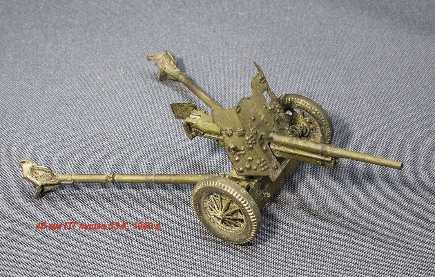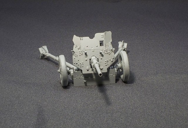По пушке - немного доработал по мелочи станок, поставил точеный ствол, спаял щиток, изобразил на щитке клепку. Знаю, что для буксируемого варианта надо было поднять нижнюю часть защиты на станке орудия, но решил сделать с опущенным щитком, хотя это не совсем правильно.