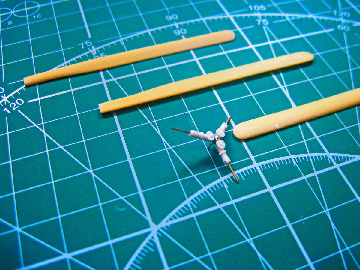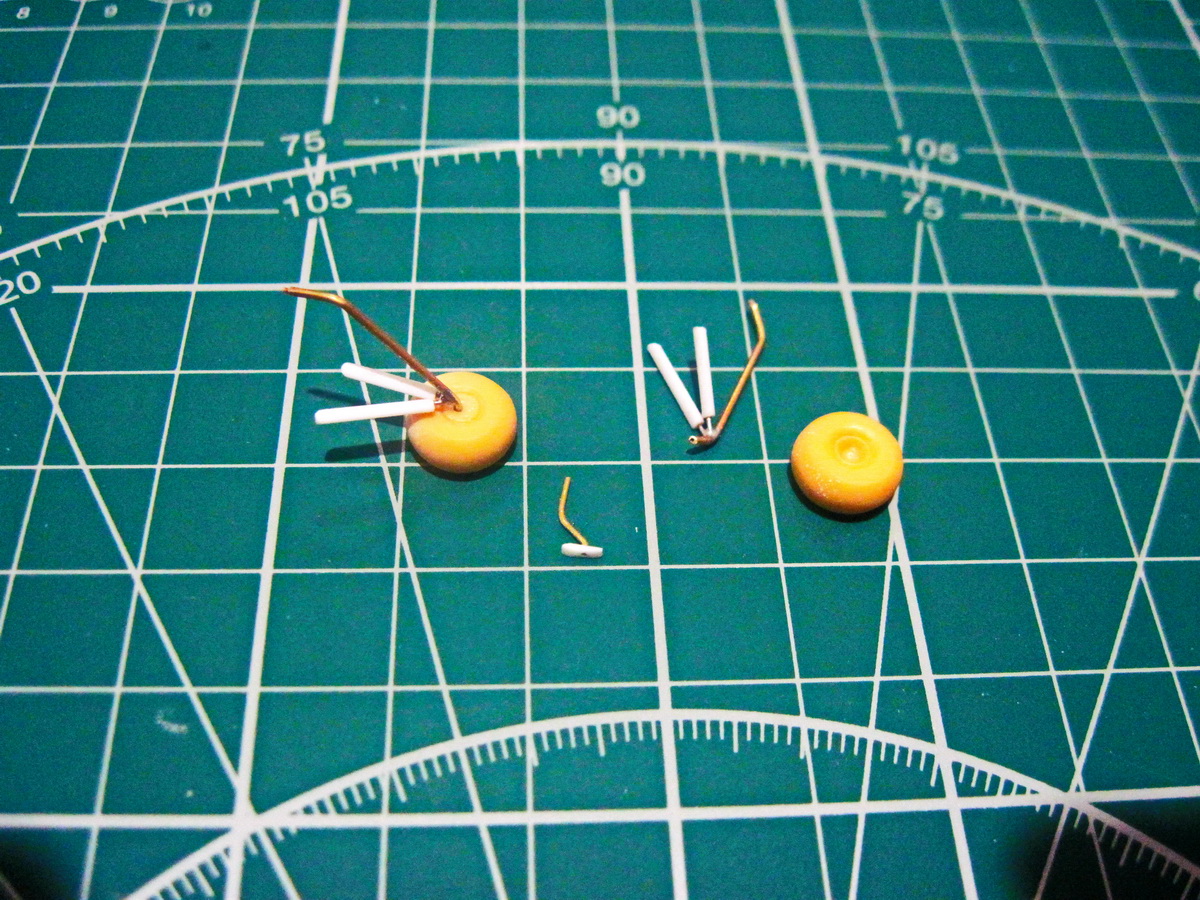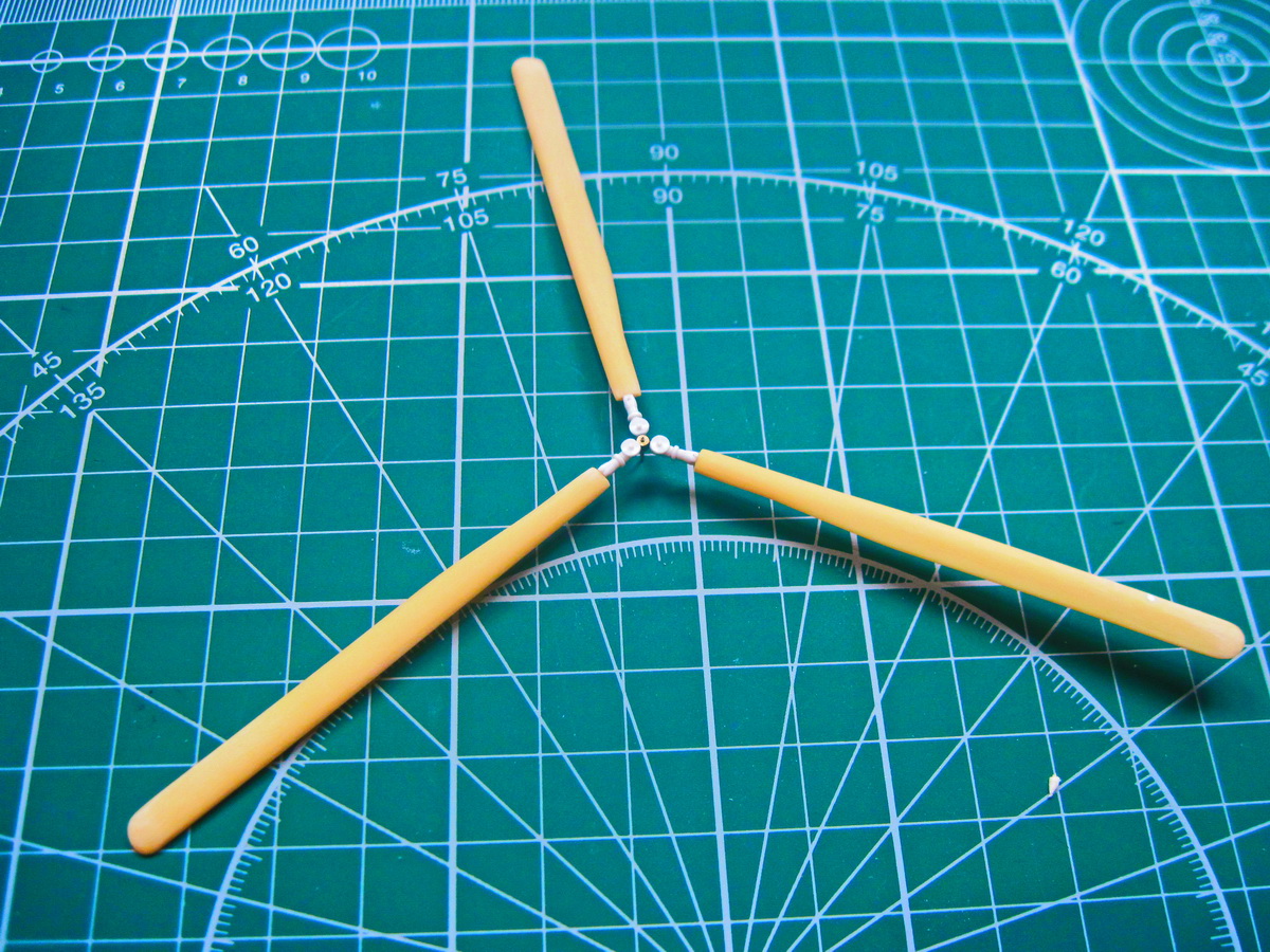 Полуось с латунной трубки, подкосы паянная проволока и выточенные обтекатели.