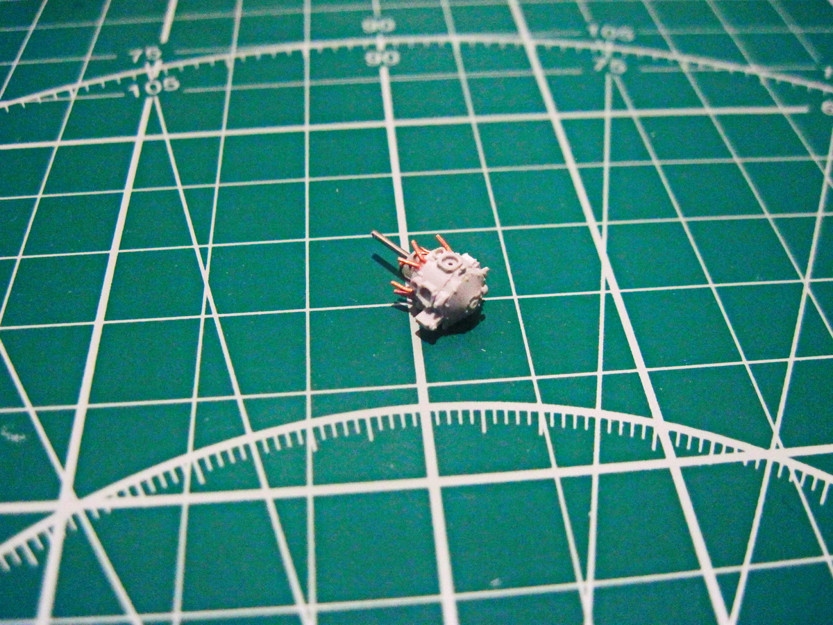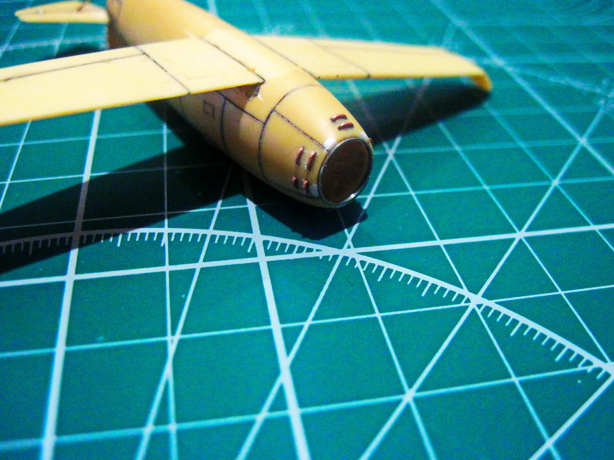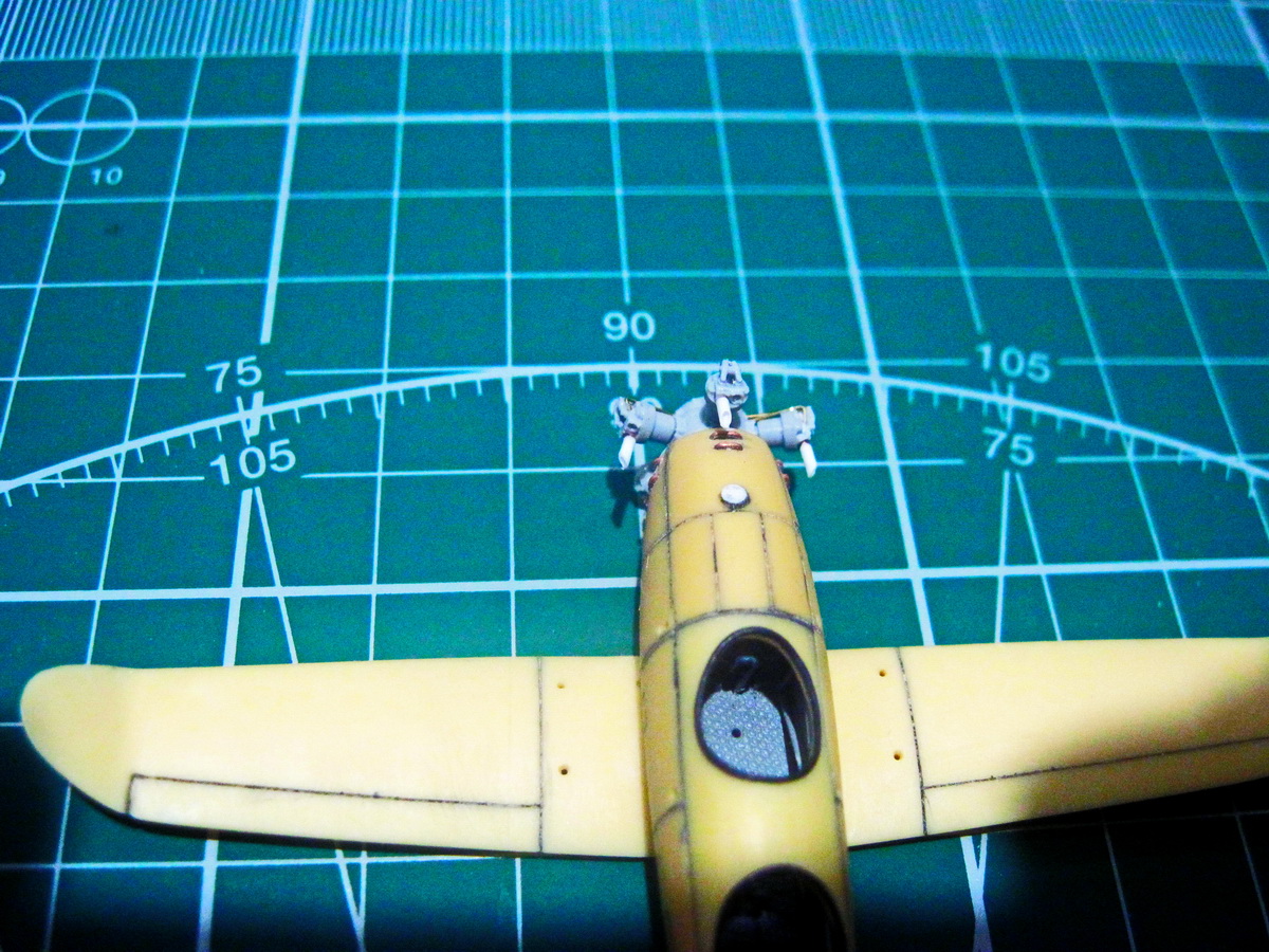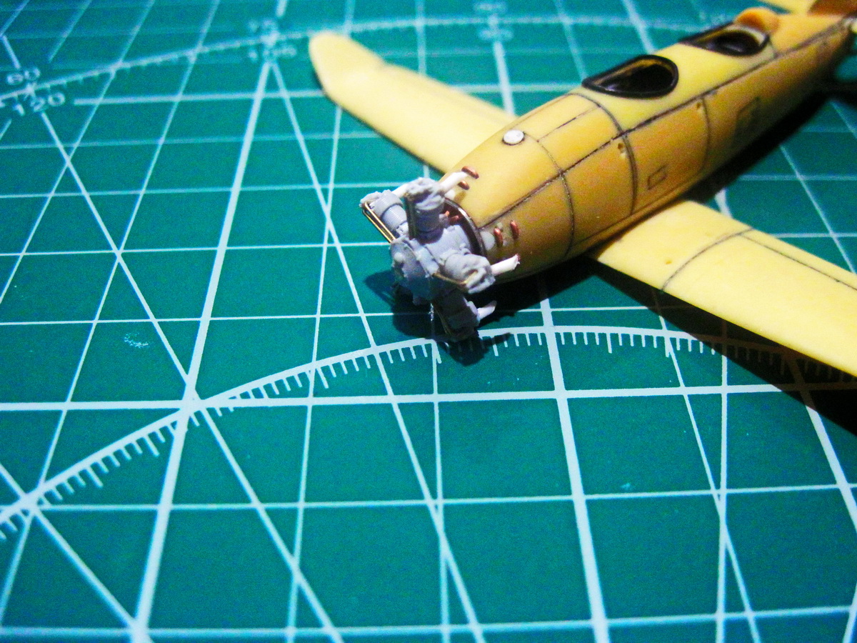 В очередной раз перешил моторный отсек. С проволоки имитировал жалюзи охлаждения подкапотного пространства. Прутком - заливную горловину.