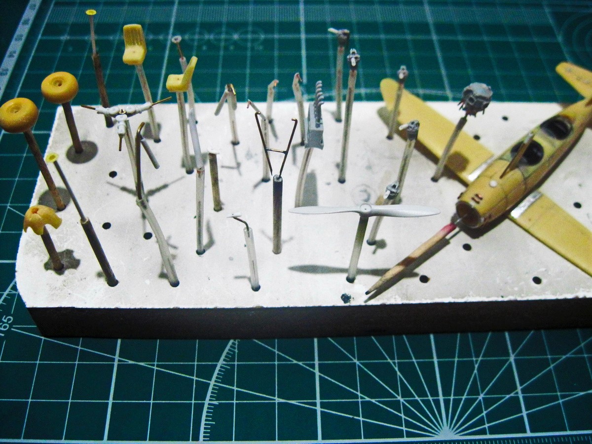 Установил стабилизаторы. Расшил, подкосы с латунной трубки. Петли с прутка.
