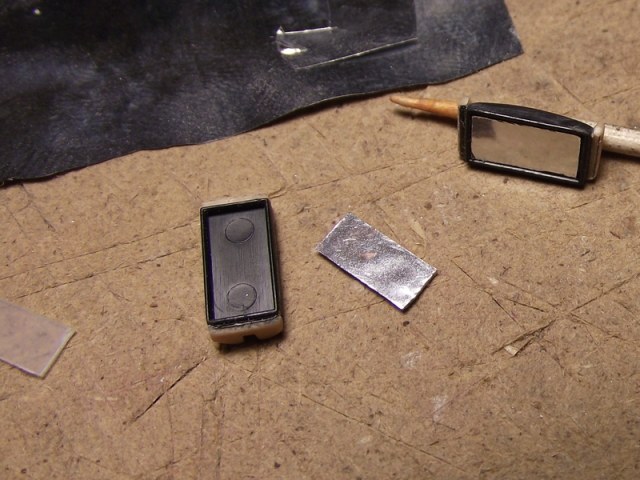 Немного дошипласта, кусочек металлизированного скотча, можно имитировать стекло клеем...