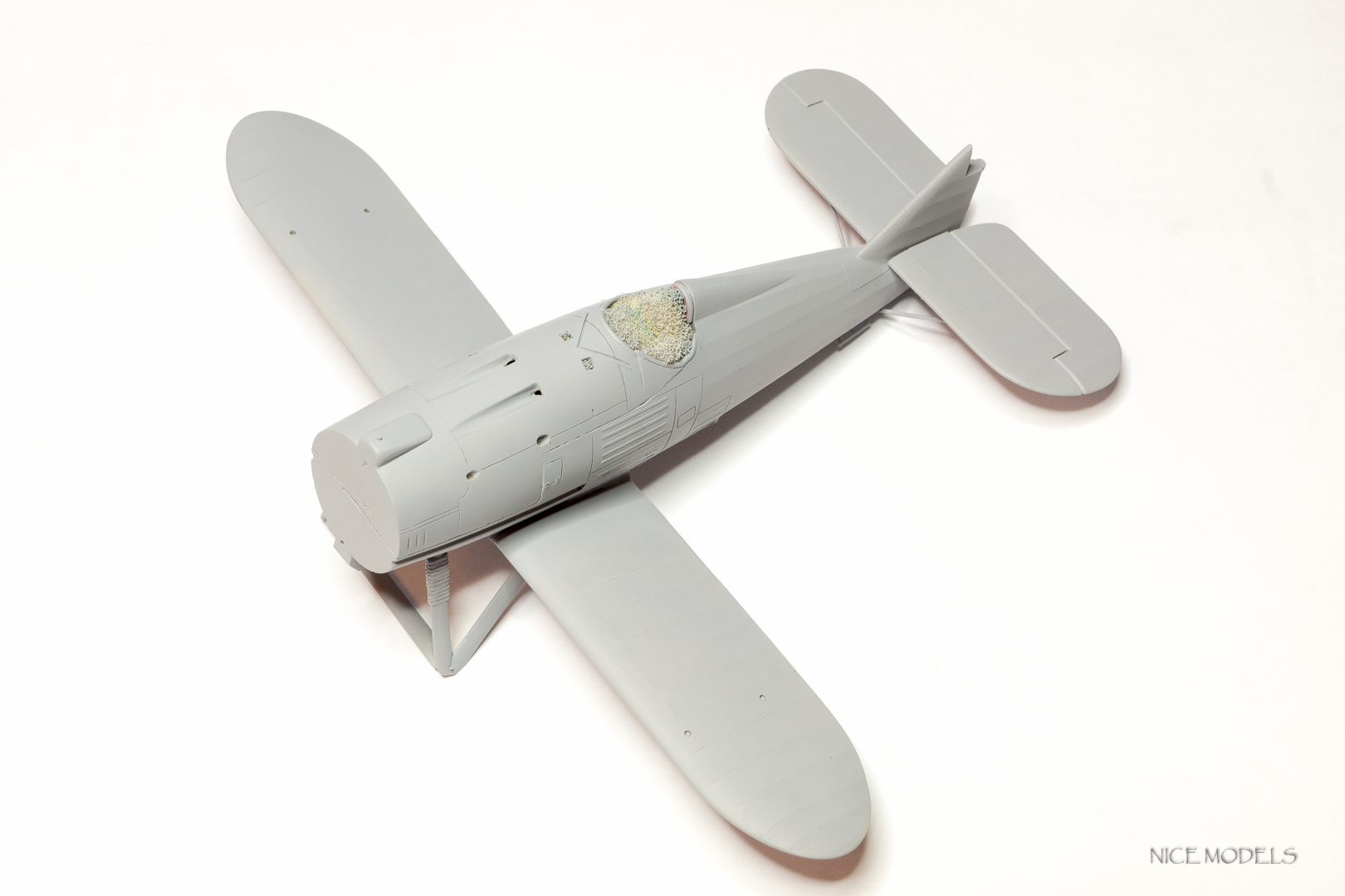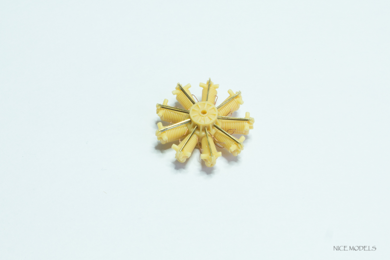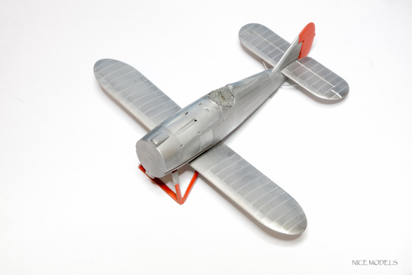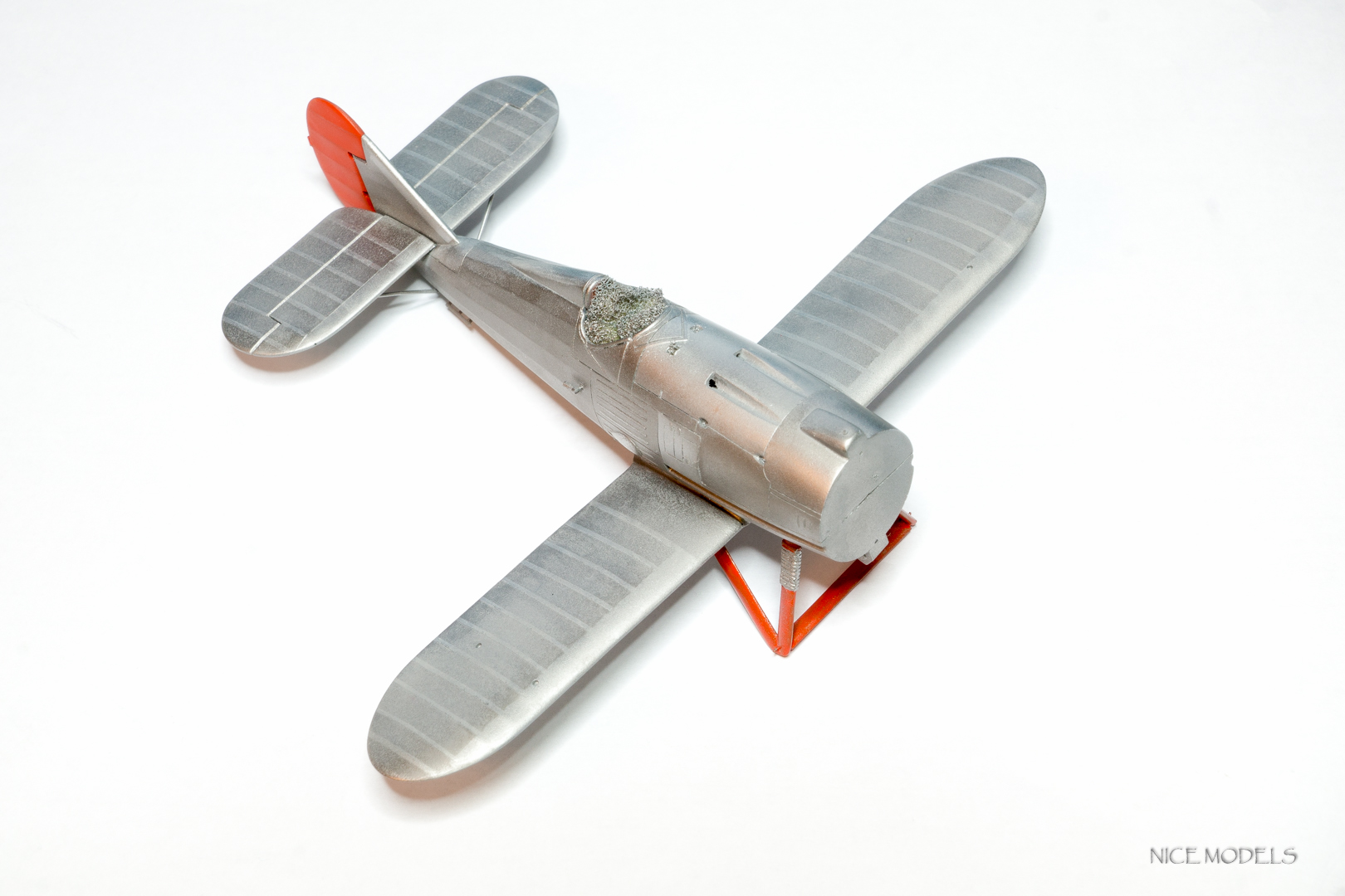 скорректировал форму маслобака и выточил из литника ось между стойками. добавил подкосы из проволоки на стабилизаторы и установил мелочевку. начал красить двигатель