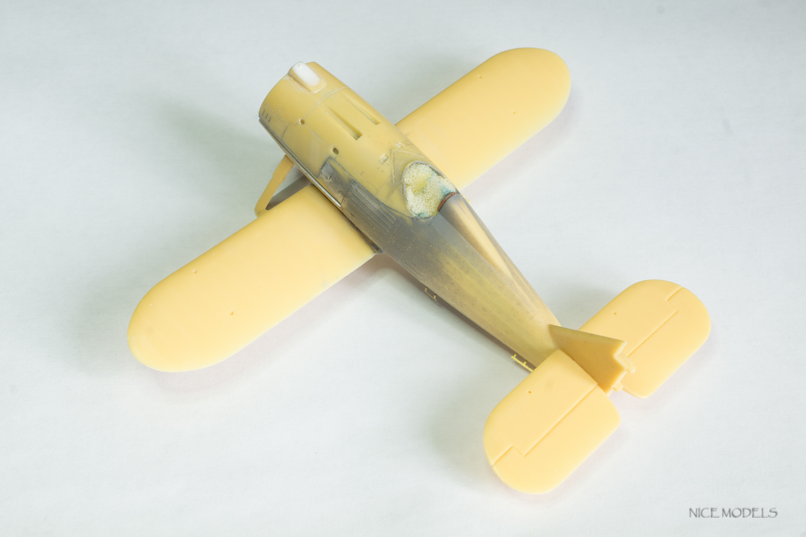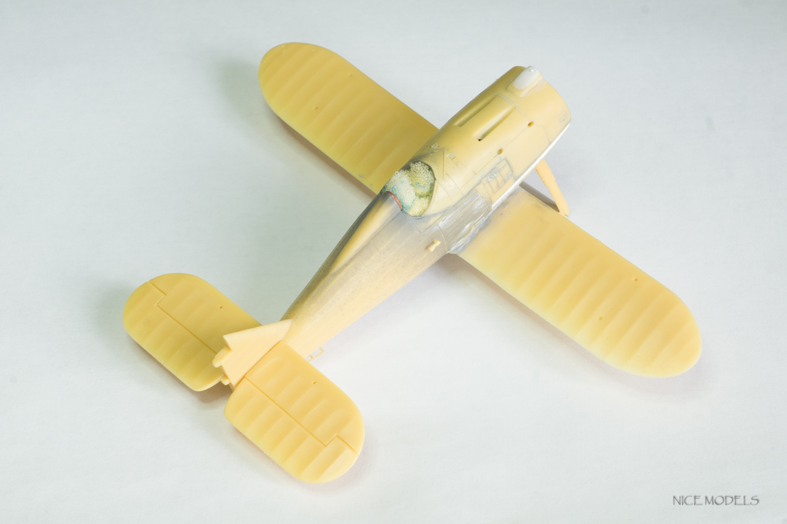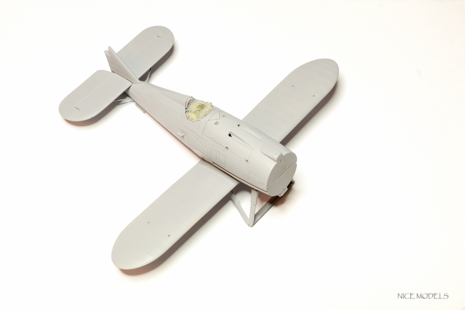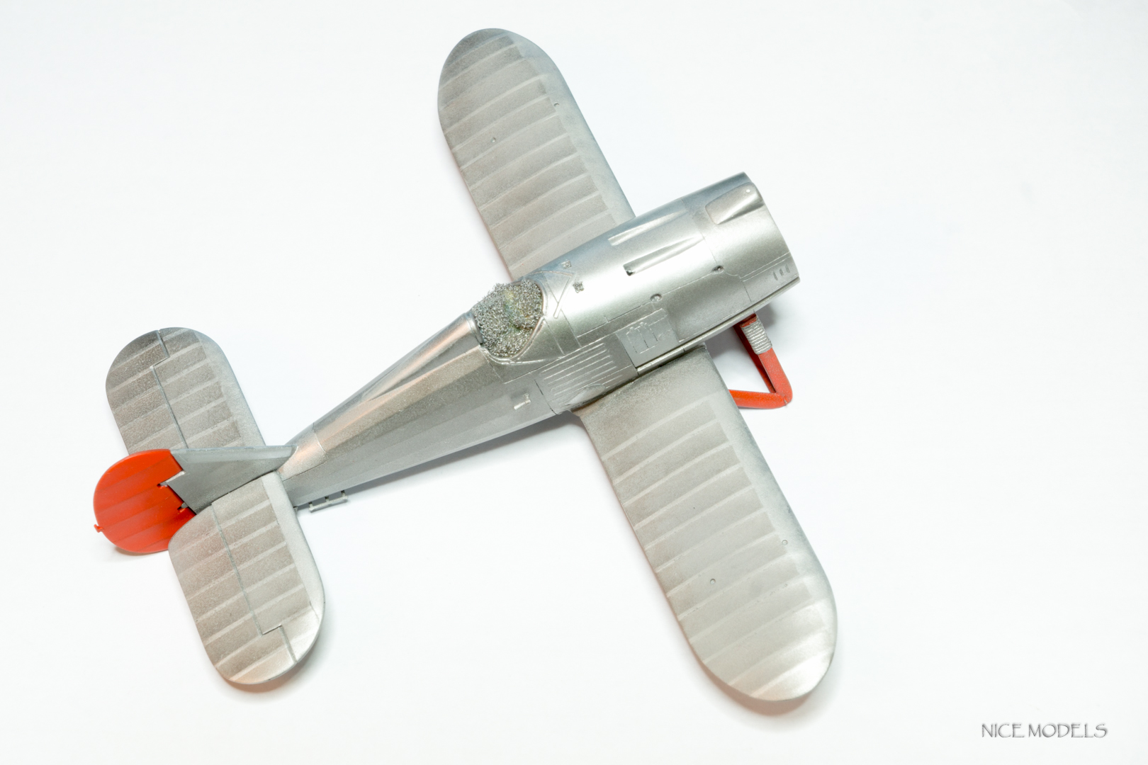 скорректировал форму маслобака и выточил из литника ось между стойками. добавил подкосы из проволоки на стабилизаторы и установил мелочевку. начал красить двигатель