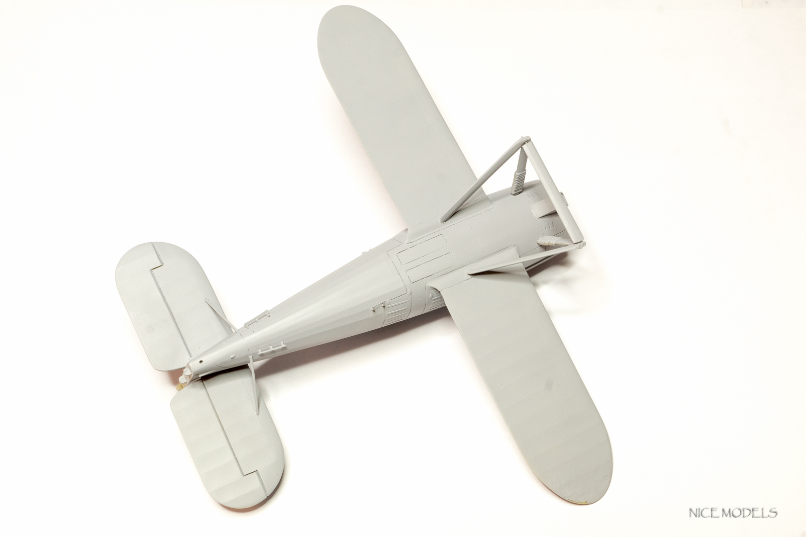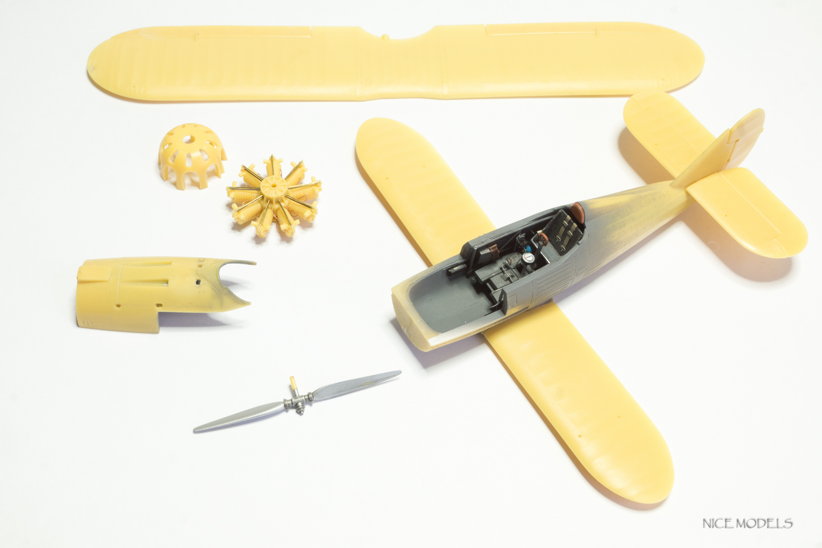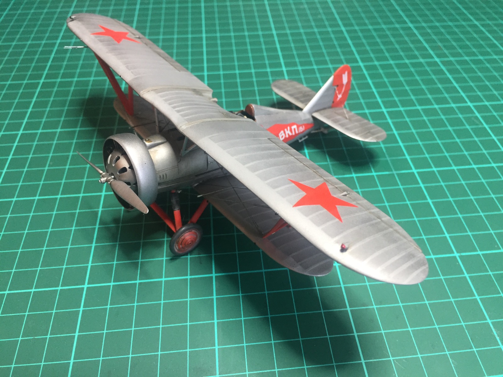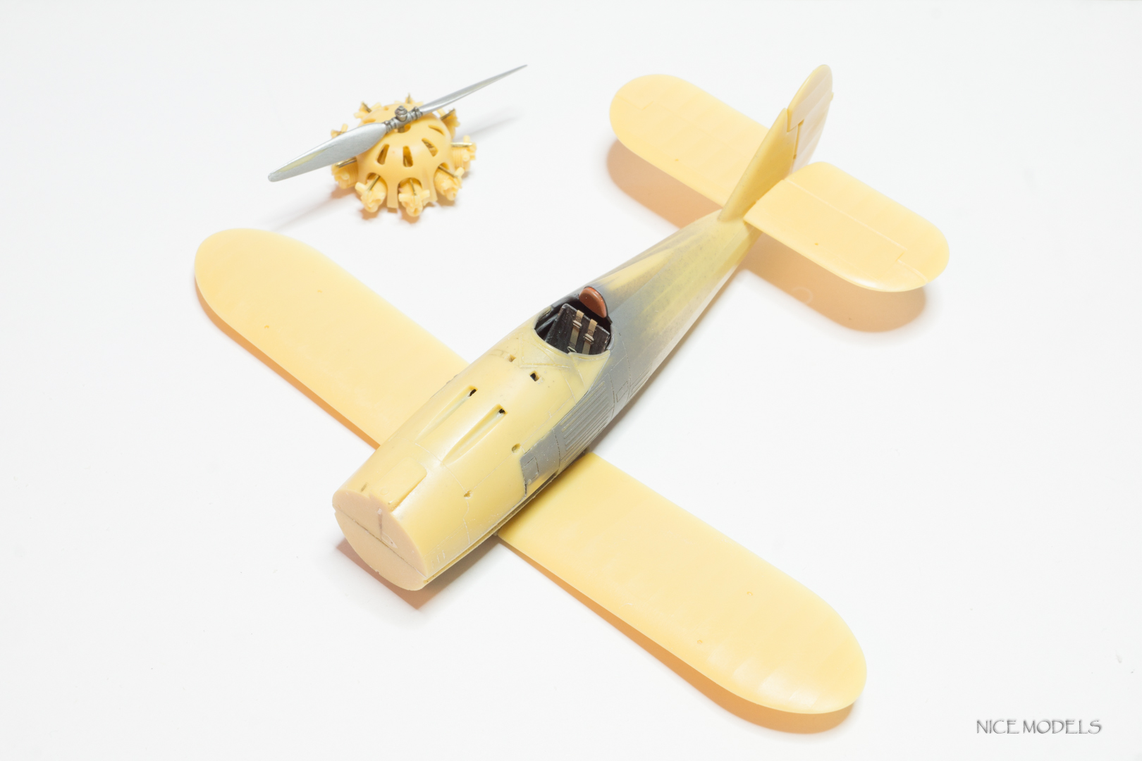 скорректировал форму маслобака и выточил из литника ось между стойками. добавил подкосы из проволоки на стабилизаторы и установил мелочевку. начал красить двигатель