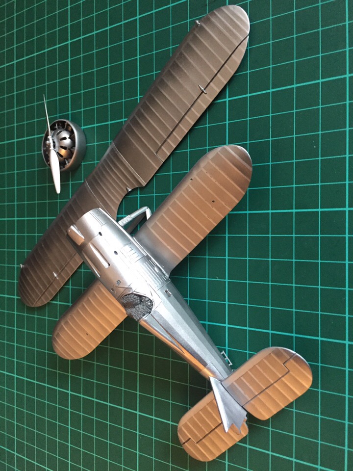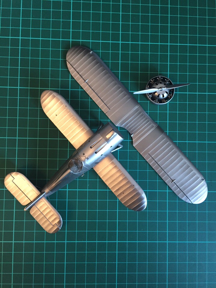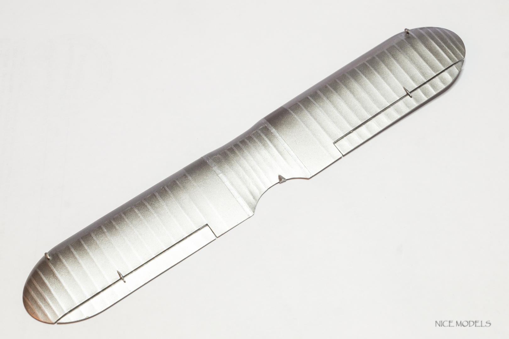 далее базовый слой светлым металликом ганза. выделение нервюр и металлических поверхностей более темным металликом Valejo Metal Color. нижние поверхности теми же красками, только в другом порядке.