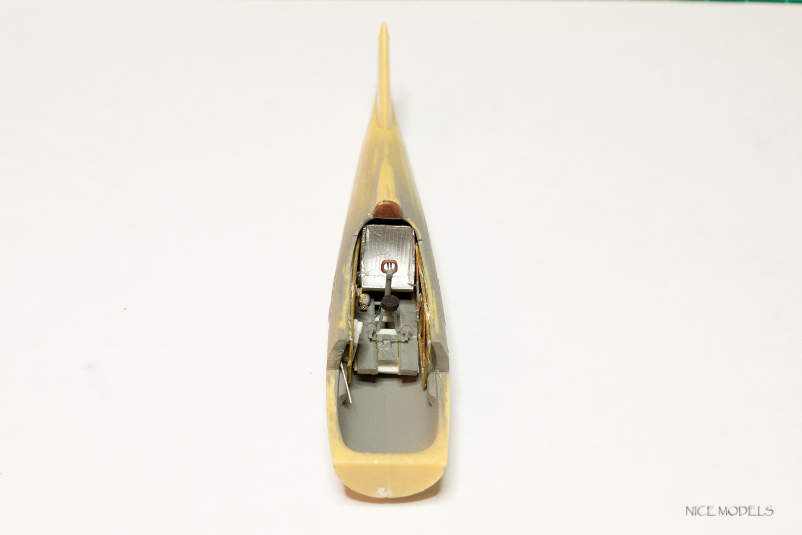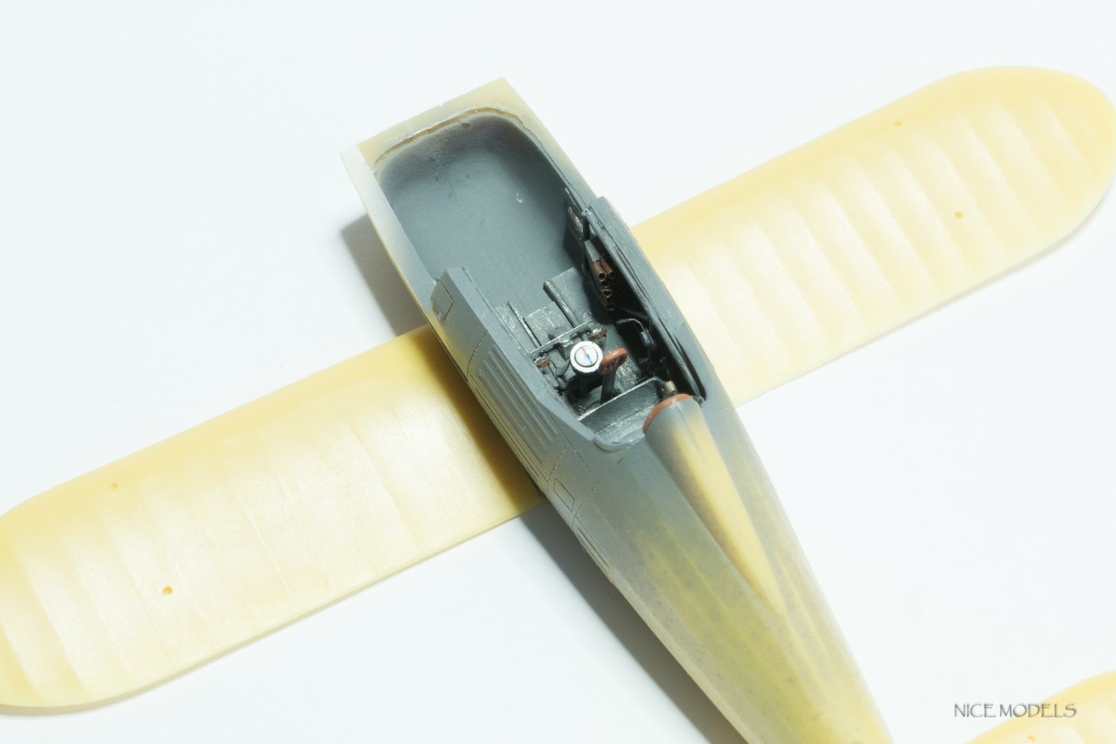 добавил прибор около кислородного баллона (кто подскажет что это?) , повесил ремни из остатков травления, сделал стрелки компаса из бумаги, стекло имитировал жидкостью от пацифик, просверлил отверстия под пулеметы, высверлил окошки над приборкой. У приборной доски есть несоответствия циферблатов и окошек в травленки. Покрасил интерьер, хотя все равно ничего видно не будет. немного доработал двигатель.