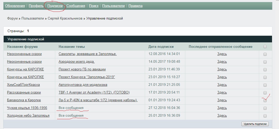 При желании отписаться - ставите галочку и жмете "Удалить подписки"