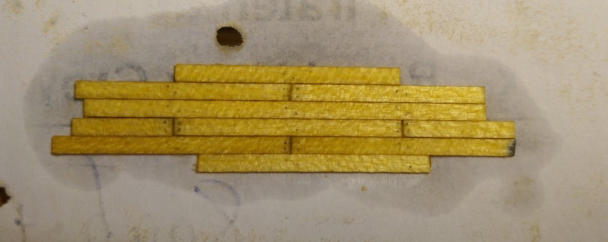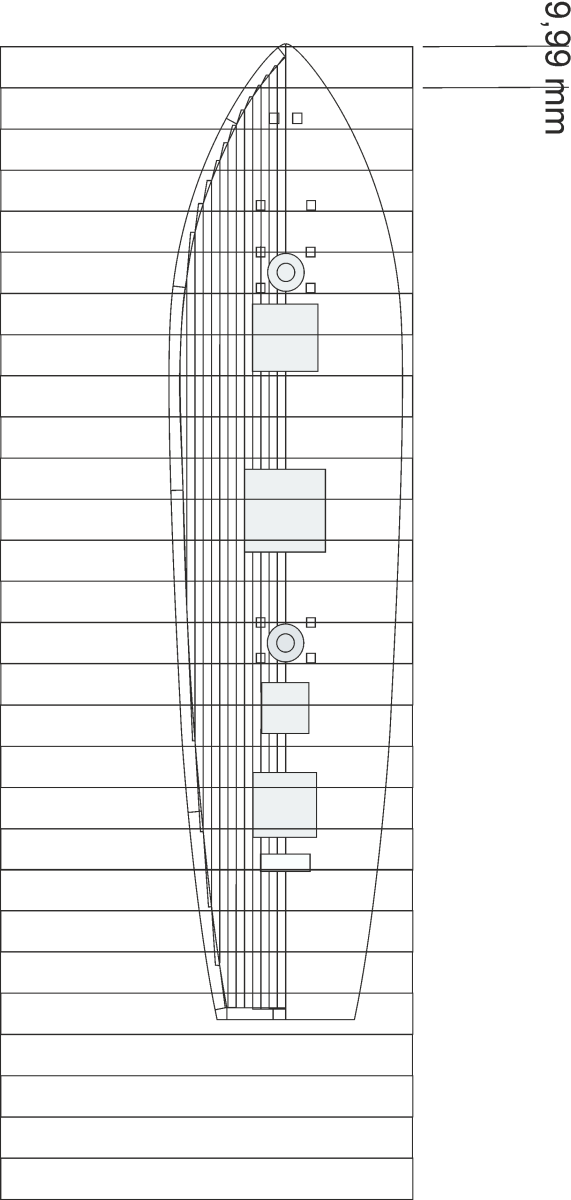 Вопрос - отрисовал в кореле палубу по скану, нанес то, что там есть, люки, битенги и прочее. Прорисовал ватервейс и рейки 2мм. На амерах похоже длина планок была примерно 14-16фт. Буду делать расстояние 20мм между линий стыков (4,8 фт, раскладка в 3 доски примерно 14 фт) строго, чтоб проще резать. Или лучше точное футовое значение?