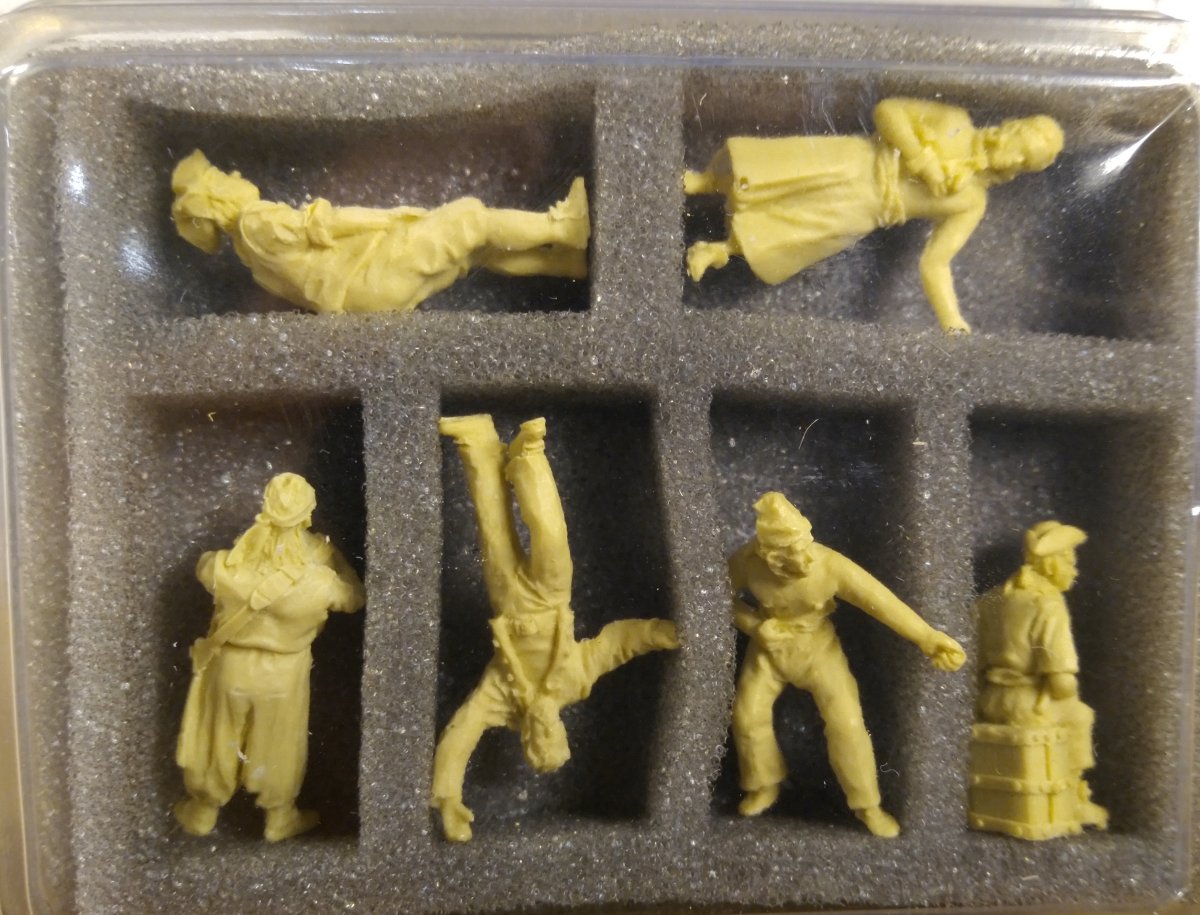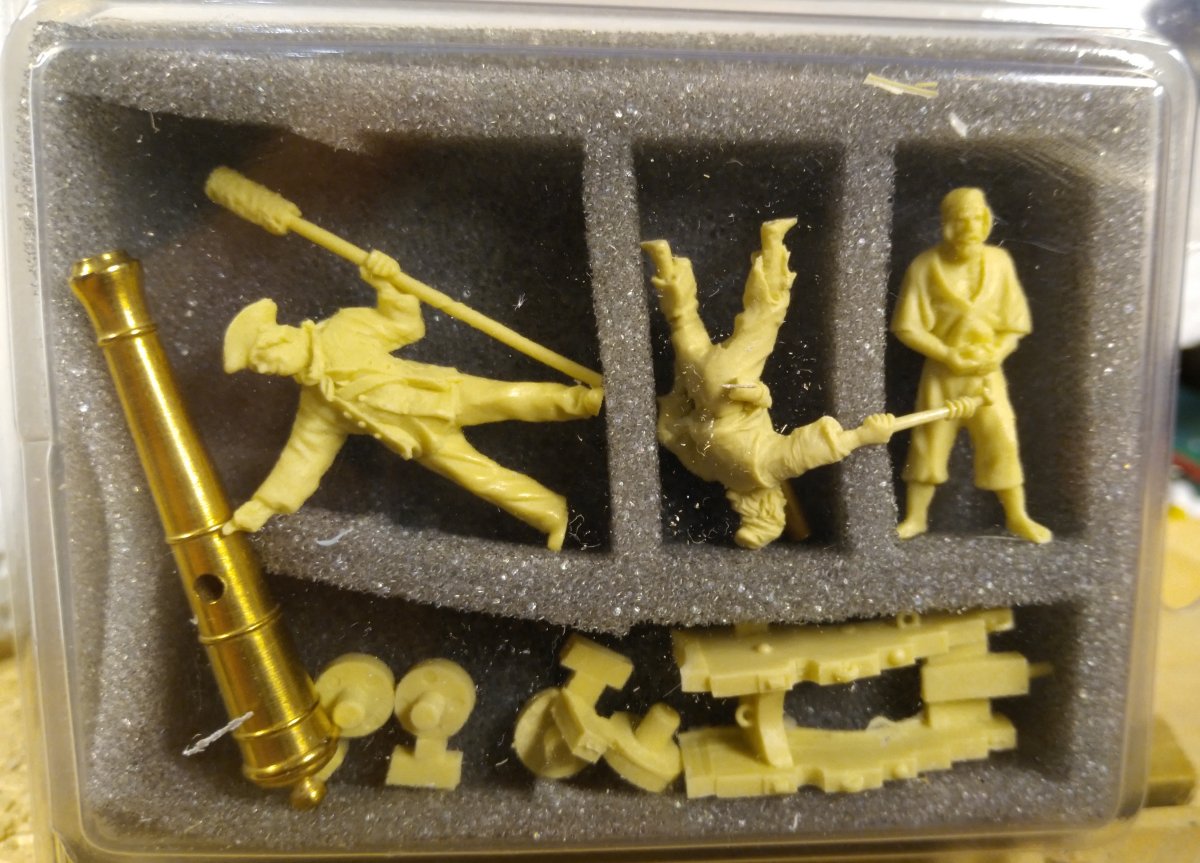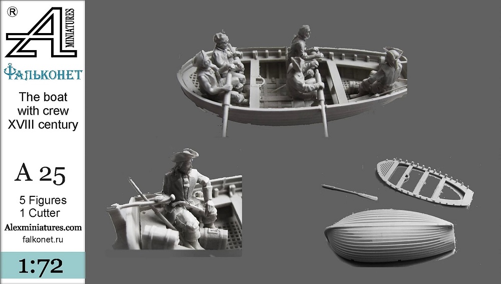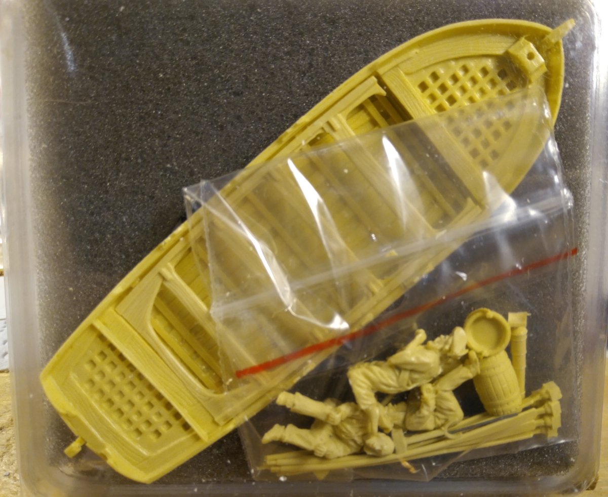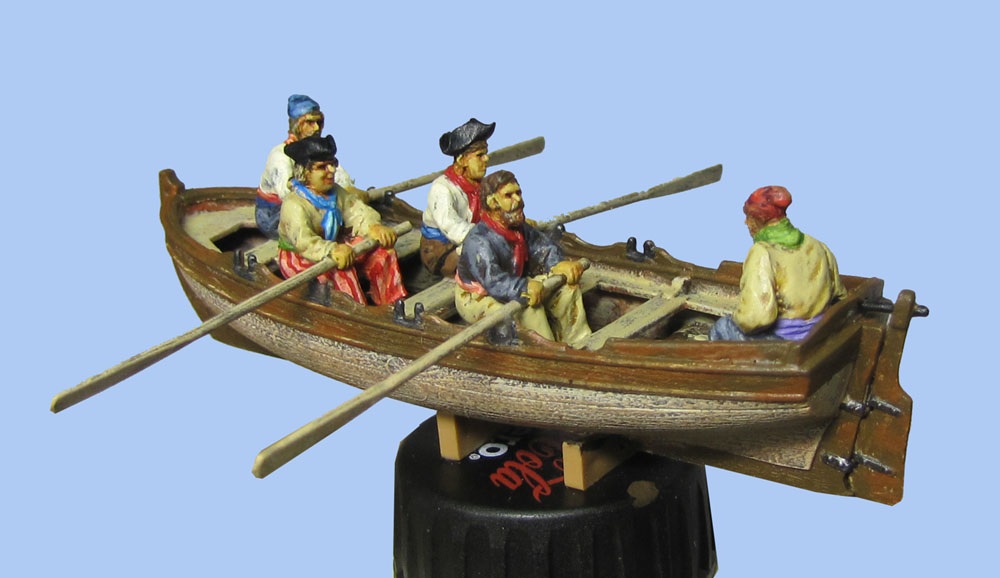 Так как планирую диораму, то заказал экипаж. Идея у меня такая - приватир остановил кого-то выстрелом под нос, и спустил шлюпку с призовой коммандой. Сам приватир еще подбирается поближе к жертве и готовится лечь в дрейф, а шлюпка уже отвалила.