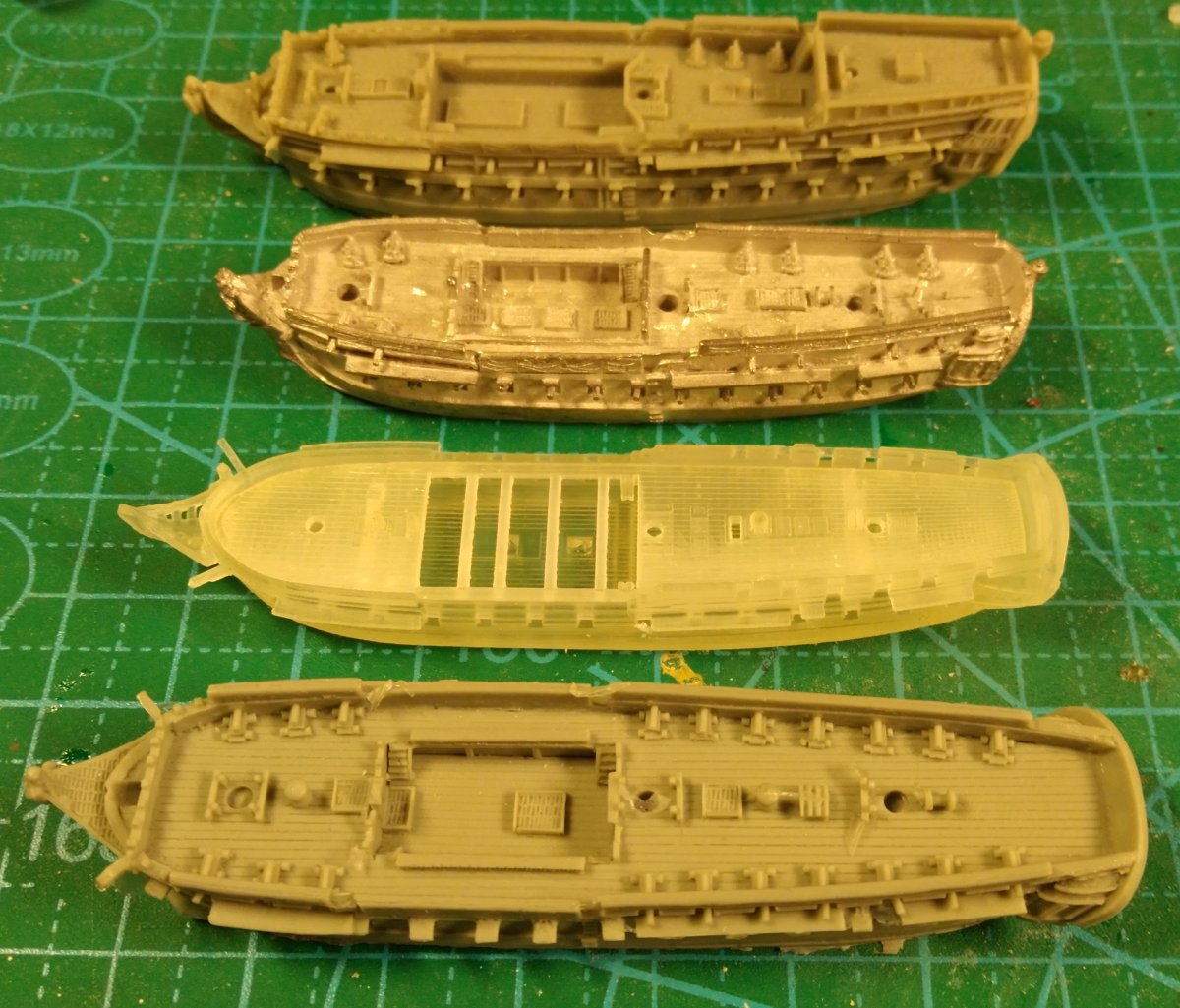 Буду загонять в 1:72 масштаб, в нем это будет 56фт по палубе - вполне себе мелкая шхуна. Мелочи буду менять на Миланию, благо я их дистрибутор по Европе, и этого добра у меня полно на складе. Пушки у меня вроде мелкие точеные тоже были, когда-то давно я пытался довести до ума пластиковую Гото Предестинацию, но бросил.