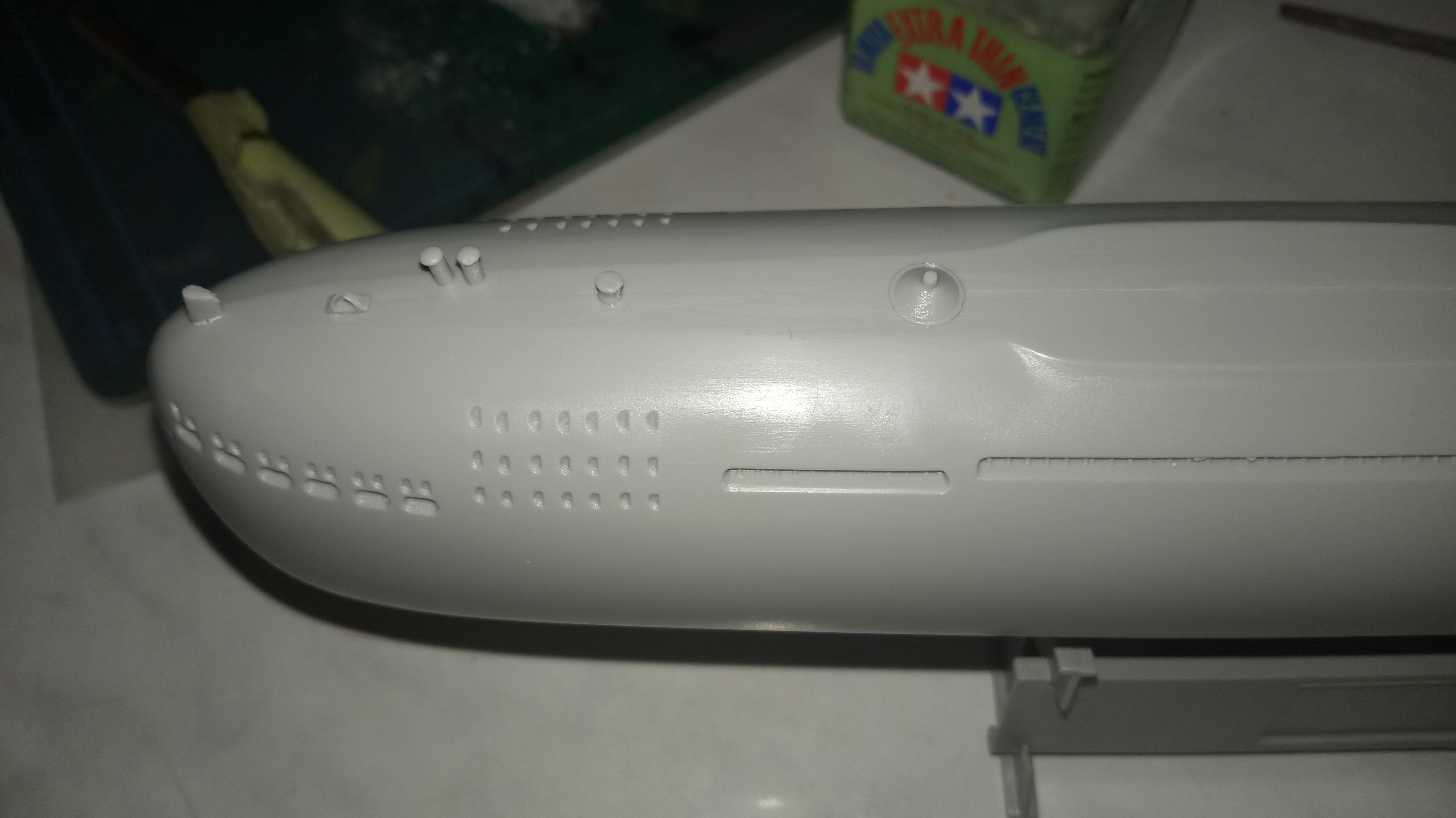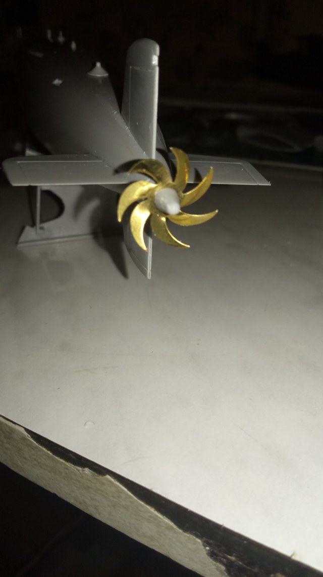 Склейка корпуса прошла без эксцессов, половинки ровно сошлись, винт порадовал, металл жёсткий, угол атаки был уже изначально установлен, после склейки корпус был отшлифован, установлены на палубу кнехты, аварийные буи, ну и ещё пару неизвестных деталей указанных в инструкции, нужно будет изготовить и установить рейлинги на палубу и аварийно спасательные люки, на литники остались детали, прхопо этот литник идёт ещё к одной лодке только не известно к какой, теперь очередь рубки, буду остеклять и изготавливать мостик