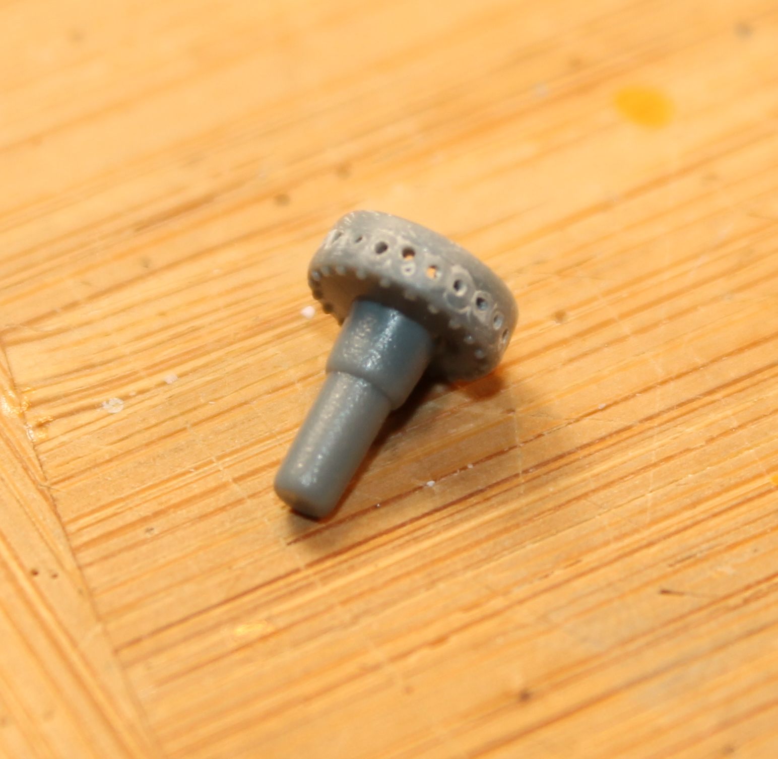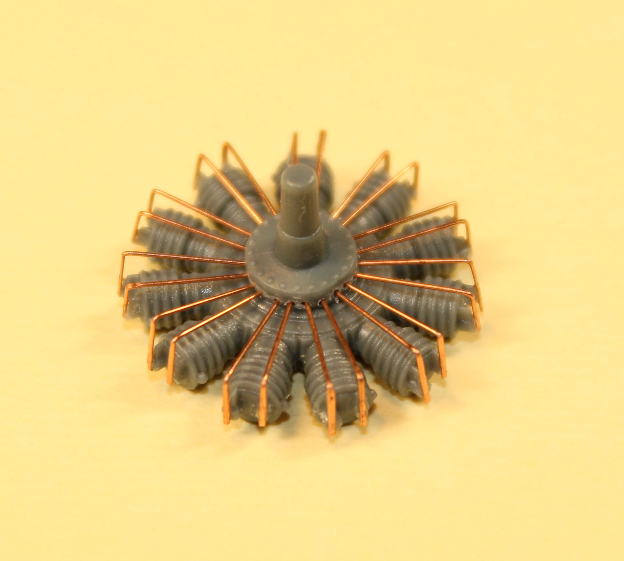 Итак, я реализовал идею замены пластиковых толкателей на проволочные, все шаги в фото - срезал пластиковые толкатели, наметил будущие отверстия иглой, обточил деталь, накрутил отверстий и приклеил толкатели из медной проволоки. и для сравнения фото реального двигателя. Заранее понимаю что сайт смешает фото, но к этому приходится относиться как к неизбежному.